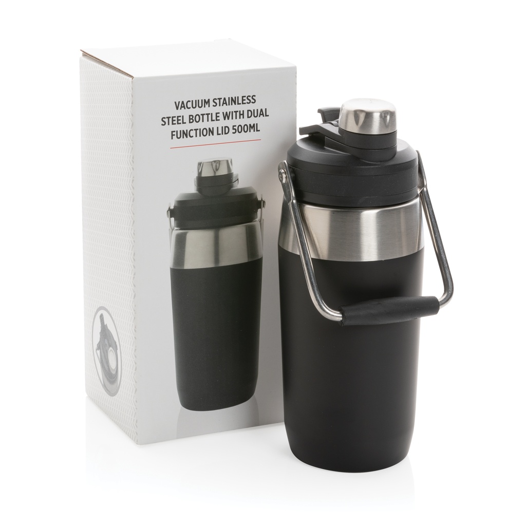 500ml Vakuum StainlessSteel Flasche mit Dual-Deckel-Funktion, Schwarz