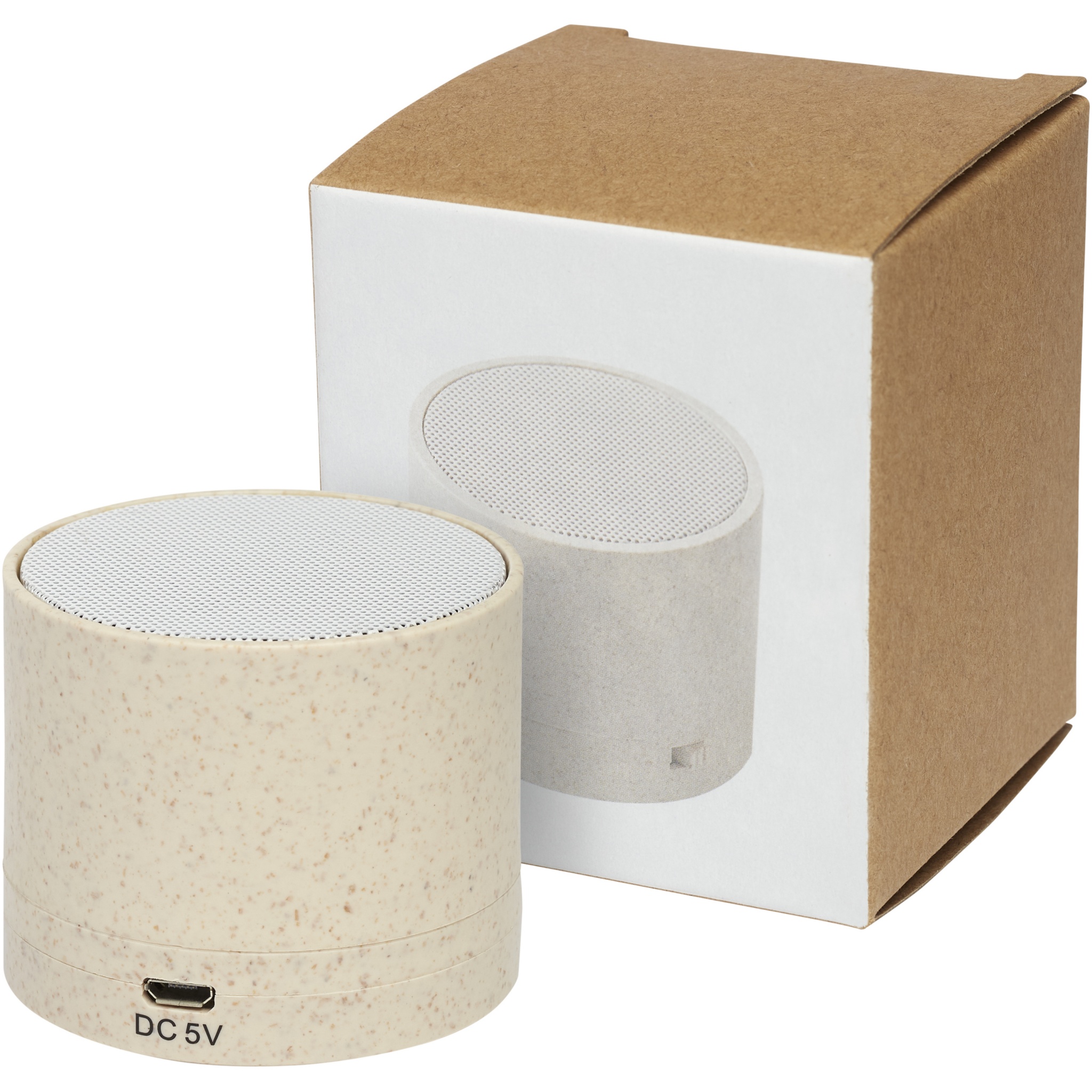 Bluetooth®-Lautsprechergehäuse aus einer Mischung von Weizenstroh und Kunststoff, wodurch die benötigte Menge an Kunststoff reduziert wird. Der Lautsprecher erzeugt kristallklaren Klang bei einer Wiedergabezeit von über 1,5 Stunden bei maximaler Lautstärke und 3 W Leistung. Bluetooth® 5.0. Verpackt in einer Geschenkschachtel und wird mit einer Anleitung geliefert (beides aus nachhaltigem Material). Ein Micro-USB-Ladekabel ist im Lieferumfang enthalten.
