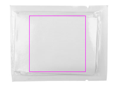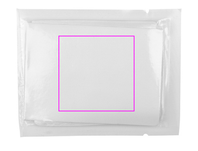 Regenponcho gefaltet in einer kleinen Verpackung (8,5 x 6 cm). Wir drucken Ihr Logo auf ein Etikett, das an der Verpackung befestigt ist. Rückseite des ungefalteten Mantels – 113 x 78 cm.