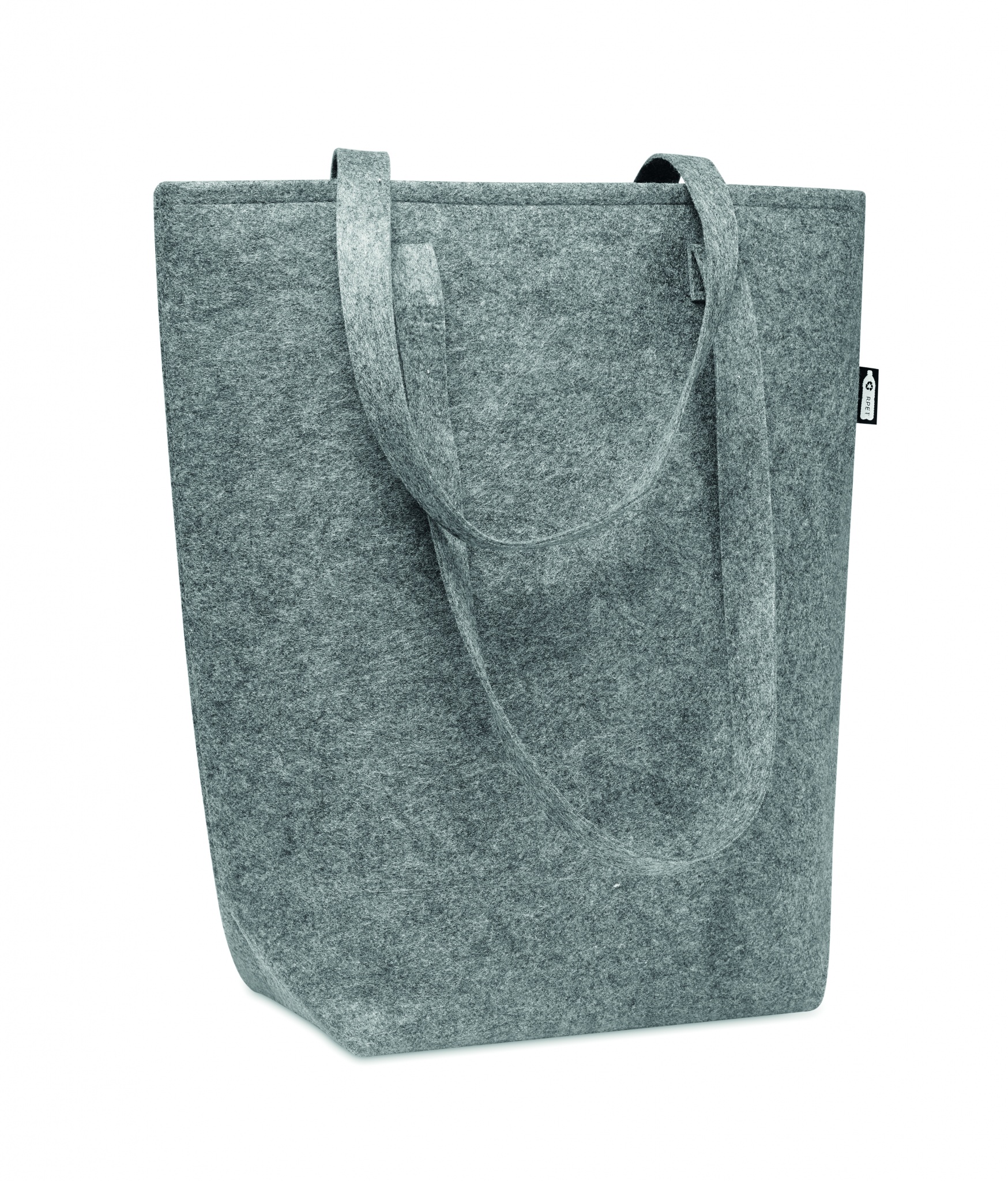 Shopping Tasche aus RPET-Filz mit langen Tragegriffen und Bodenfalte. Filzstärke: 2 mm.