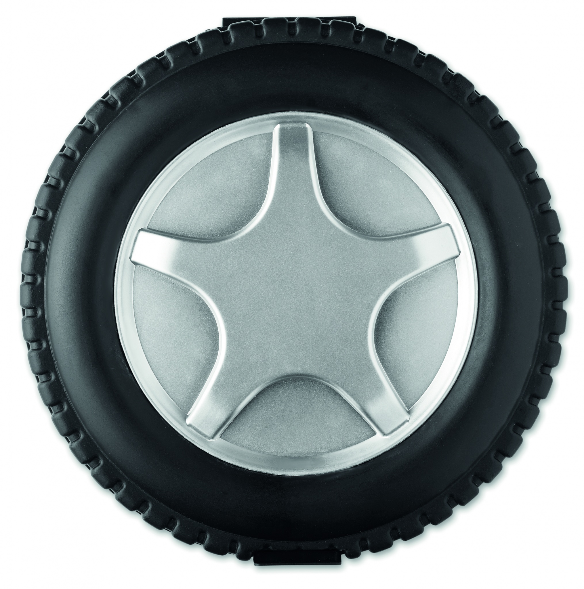 25 piece tool set in tyre shaped box including 1 extender, 1 socket screwdriver, 1 nose plier, 5 sockets, 3 hex keys, 10 bits set, 2 precision screwdrivers and 1 tape.