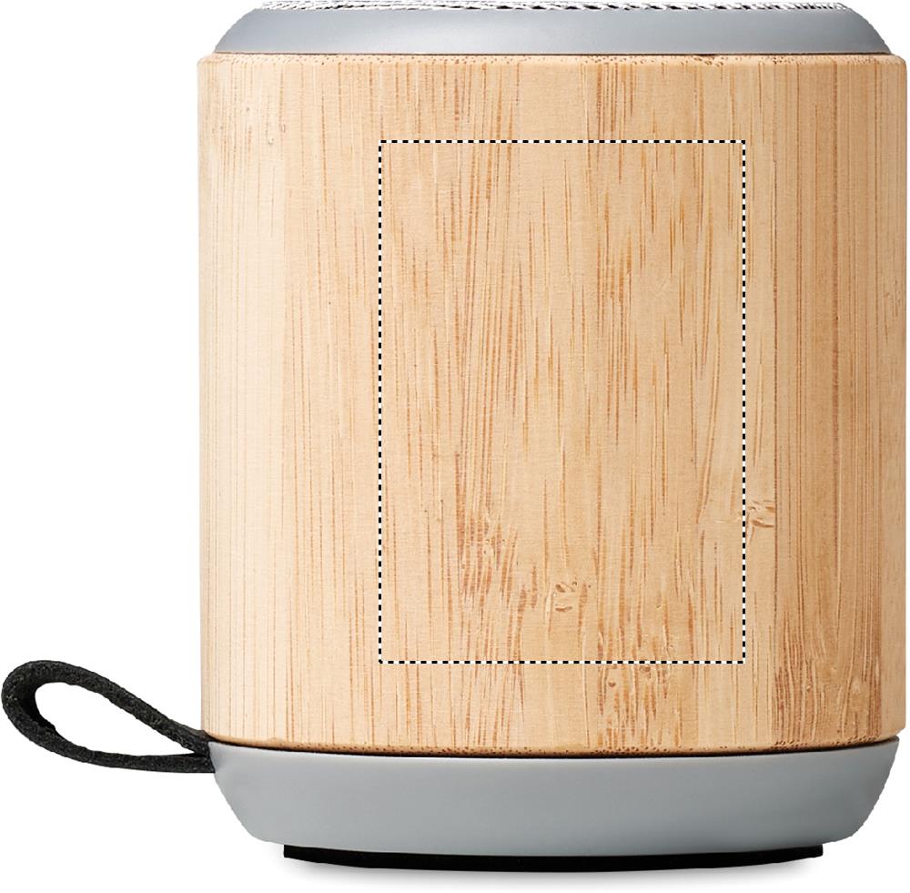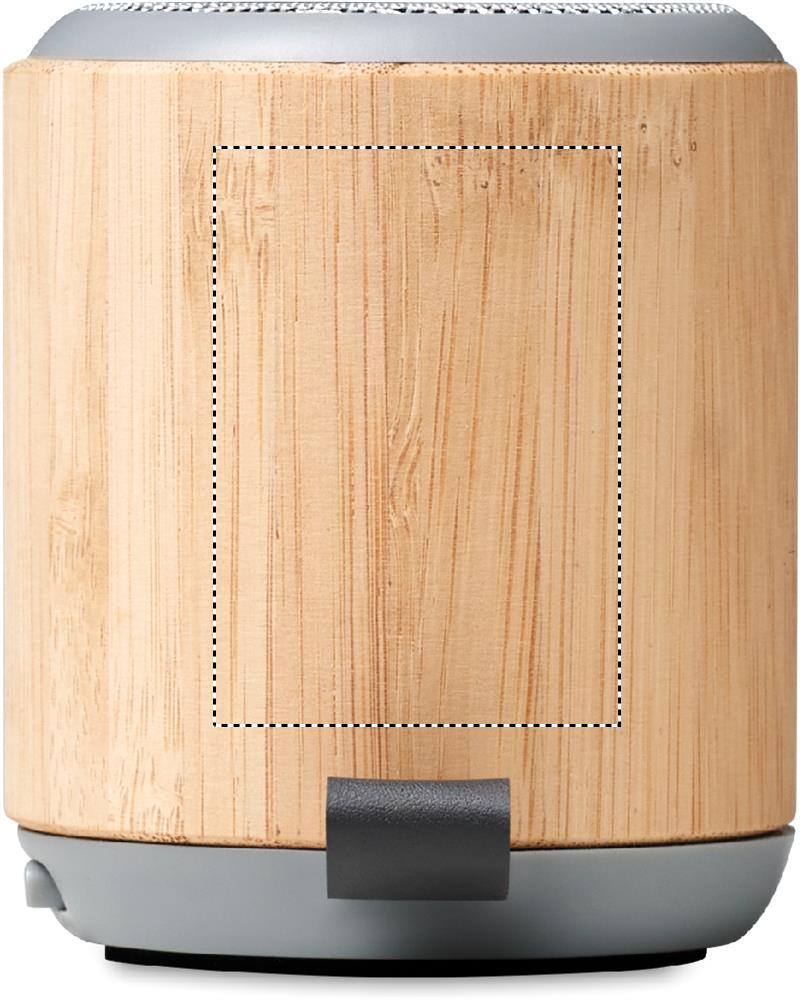 5.3 wireless speaker in bamboo cover and ABS on top with PU strap. 1 Rechargeable Li-Ion 300 mAh battery. Output data: 3W, 4 Ohm. Playing time approx. 2h. Bamboo is a natural product, there may be slight variations in colour and size per item, which can affect the final decoration outcome.