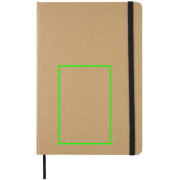 Kraft cover notebook with recycled paper. 72 sheets/144 pages of 70 g/m2 paper. Cream coloured paper. Elastic band and bookmark ribbon.