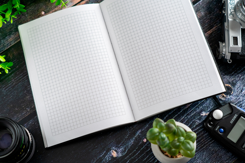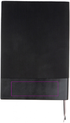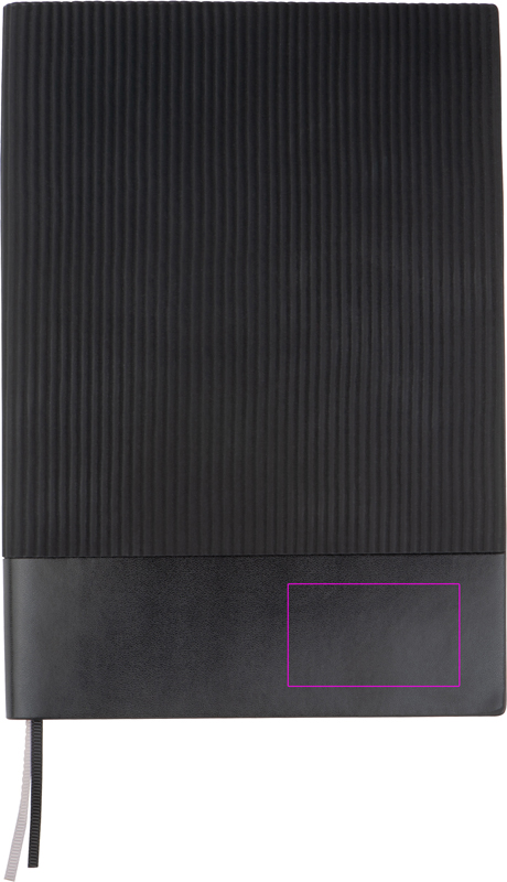A5 notebook with 200 squared pages, flexible soft PU cover, and bookmark. We print your logo on the front smooth surface.