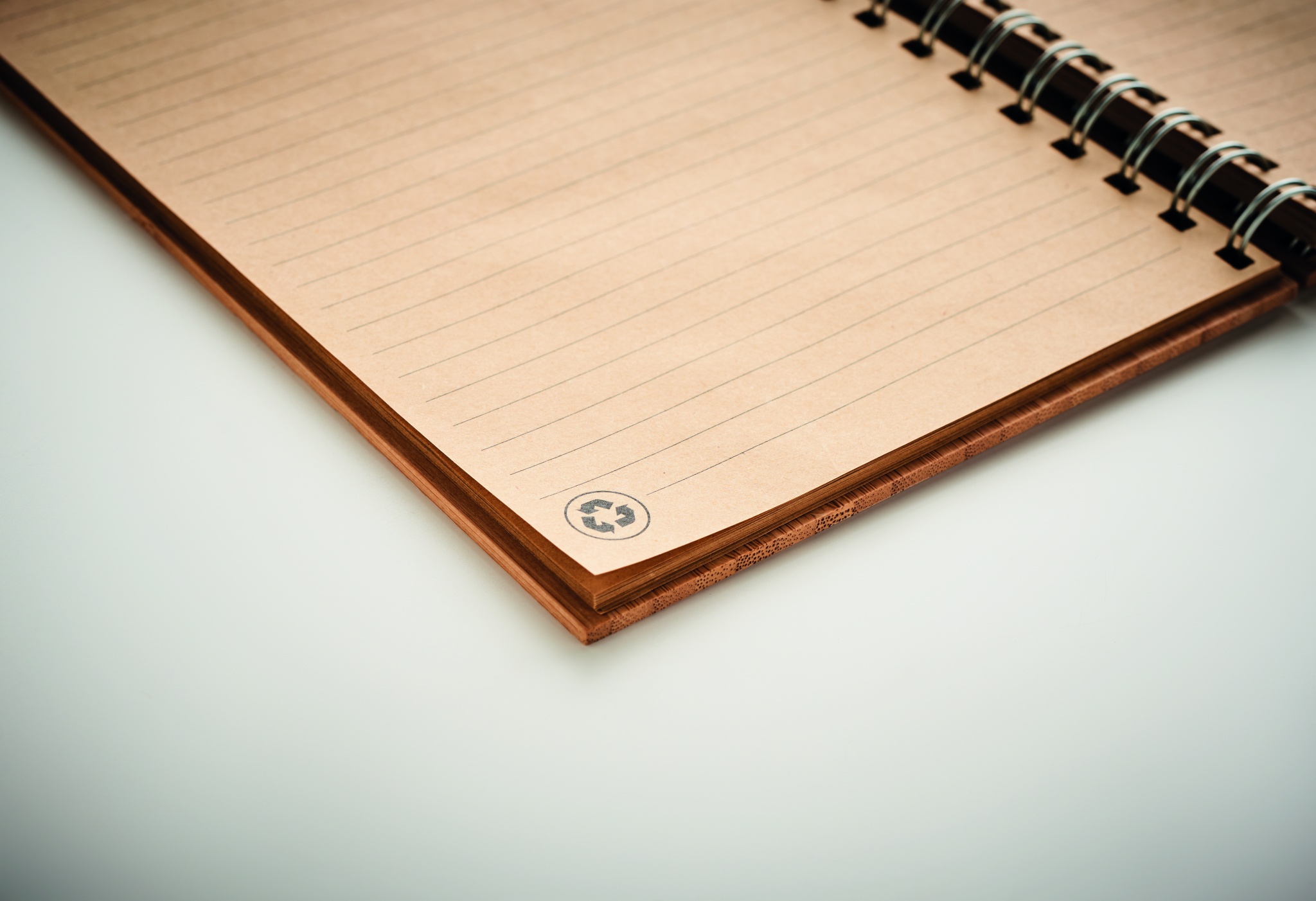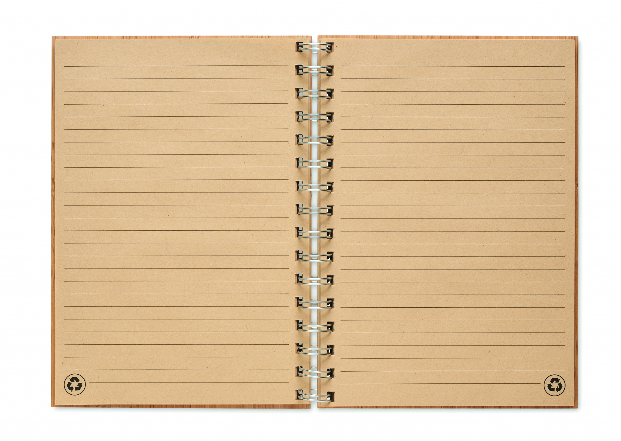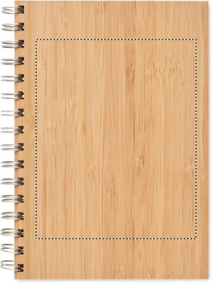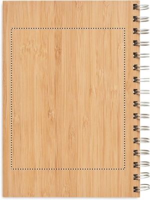 Bamboo cover notebook. Twin-wire ring bound, 140 lined kraft paper pages (70 sheets). Bamboo is a natural product, there may be slight variations in colour and size per item, which can affect the final decoration outcome.