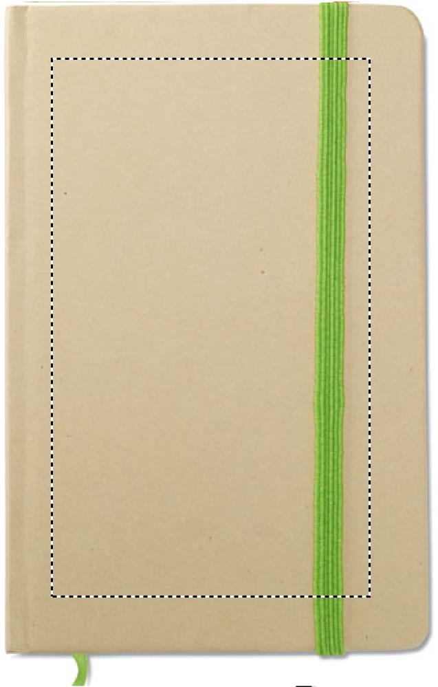 A6 recycled paper hard cover notebook. Casebound. 192 plain pages (96 sheets). Elastic closure strap and ribbon bookmark.