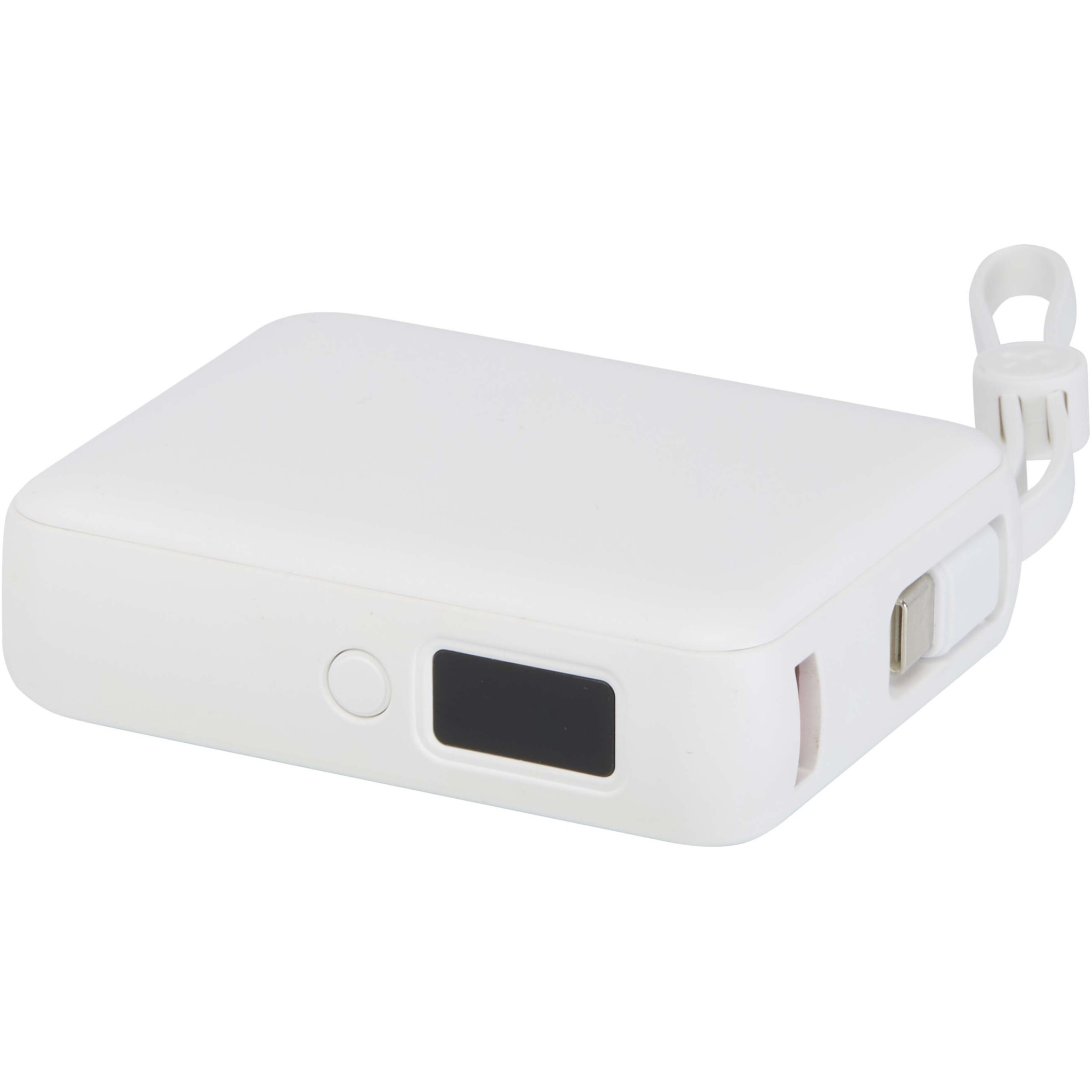 The Acrux 10.000 mAh power bank is made from recycled plastic and is designed for fast, convenient charging wherever you are. It features a 35W USB-C in/out port and an 18W USB-A port, along with a built-in USB-C and Lightning cable, so you can charge your devices without needing extra accessories. A digital display shows the charging percentage at a glance, making it easy to monitor battery levels. Perfect for keeping smartphones and tablets powered throughout the day.