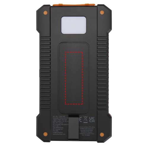 Logo trade advertising product photo of: Altair 5000 mAh 10W recycled plastic rugged solar power bank with built-in torch