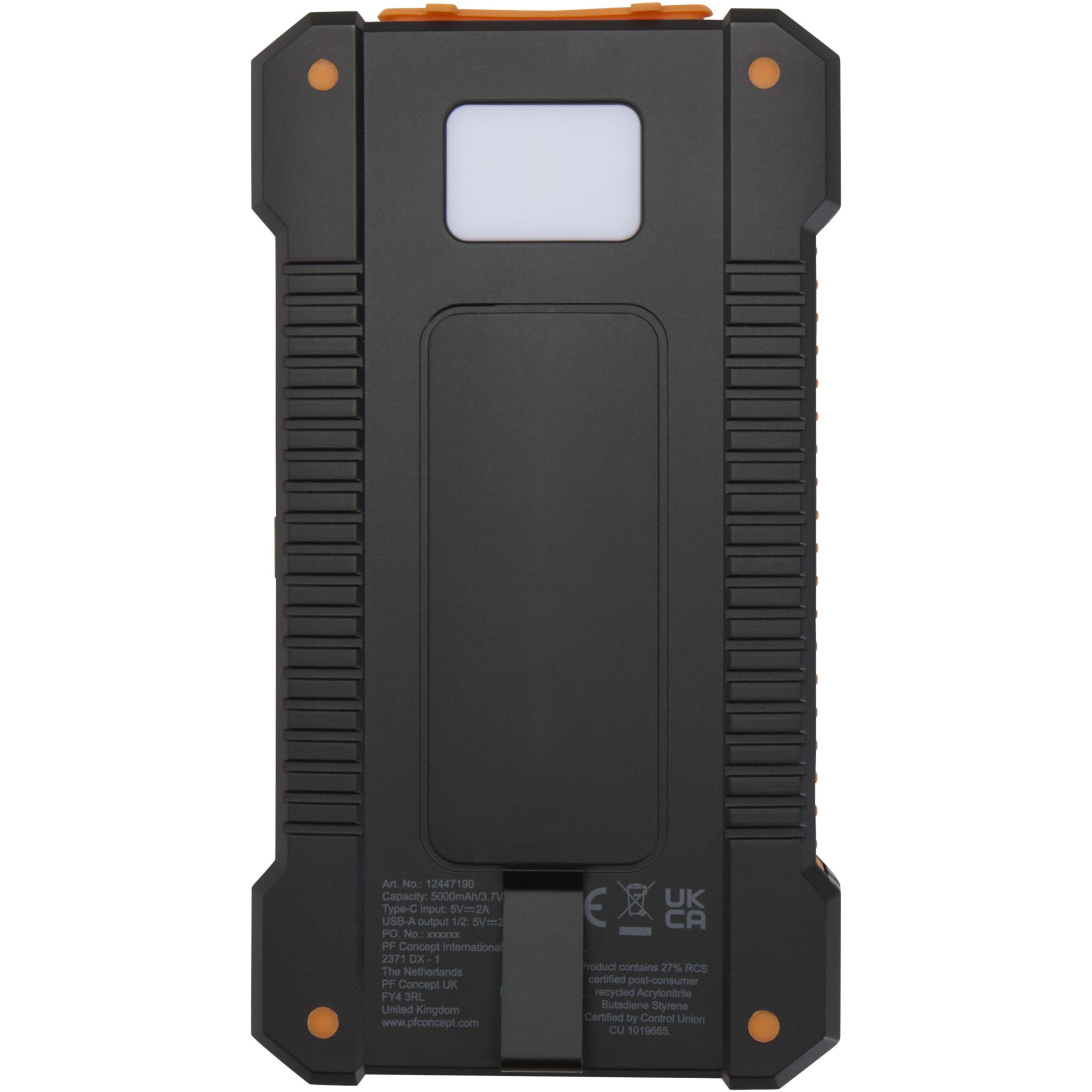 Logotrade business gifts photo of: Altair 5000 mAh 10W recycled plastic rugged solar power bank with built-in torch