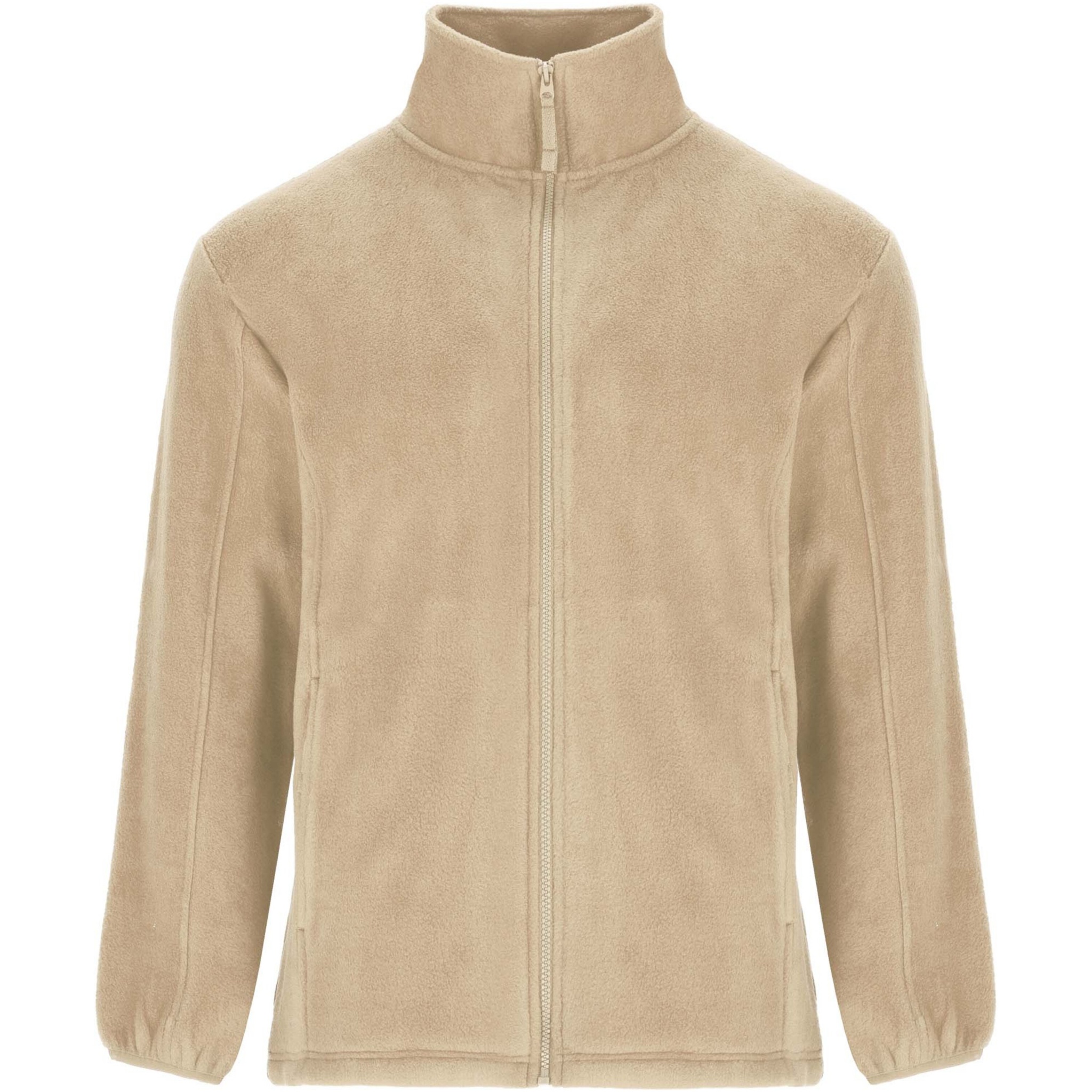 Fleece jacket with high lined collar and matching reinforced covered seams. Injected zip with matching puller made of fabric. Side pockets. Cuffs with elastic trim. Bottom hem with inner side adjusters. Removable label. The model is 185 cm and is wearing size M.
