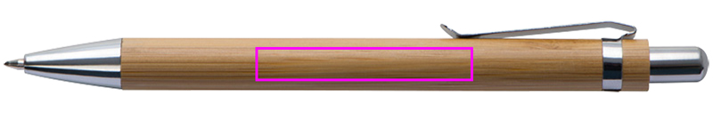 Ballpoint pen made of bamboo with blue writing large capacity refill. The finishing is done by laser engraving below the clip.