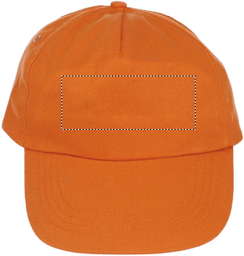 5 panel baseball cap in cotton twill 160 gr/m2 with adjustable plastic snap closure. 2 metal eyelets with matching colour plating. Size 7 1/4.