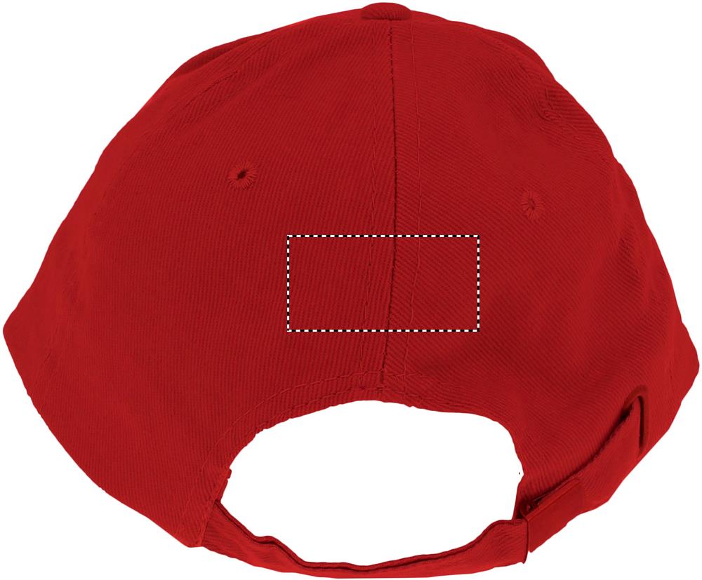 6 panel baseball cap in brushed cotton 260 gr/m2  with antique copper finish metal clips on adjustable strap closure. 6 stitched eyelets in matching colour. Size 7 1/4.