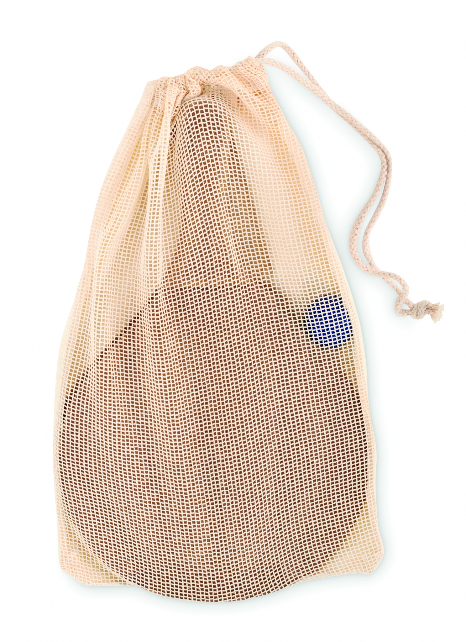 Beach tennis set consisting of 2 MDF paddles and 1 soft ball. Presented in a mesh cotton drawcord.