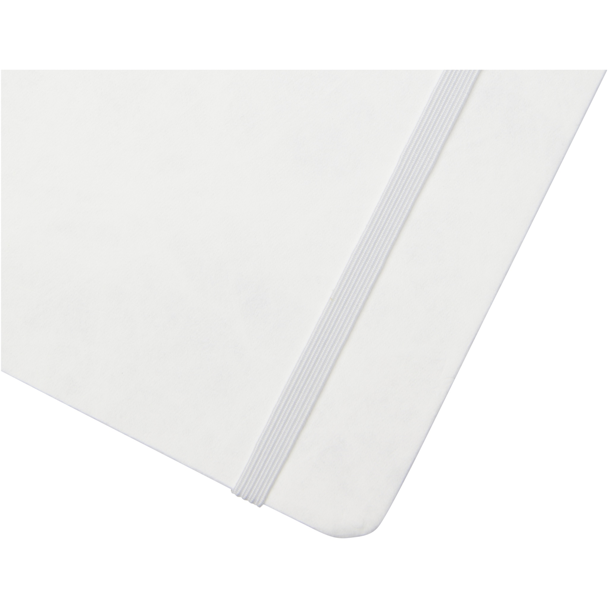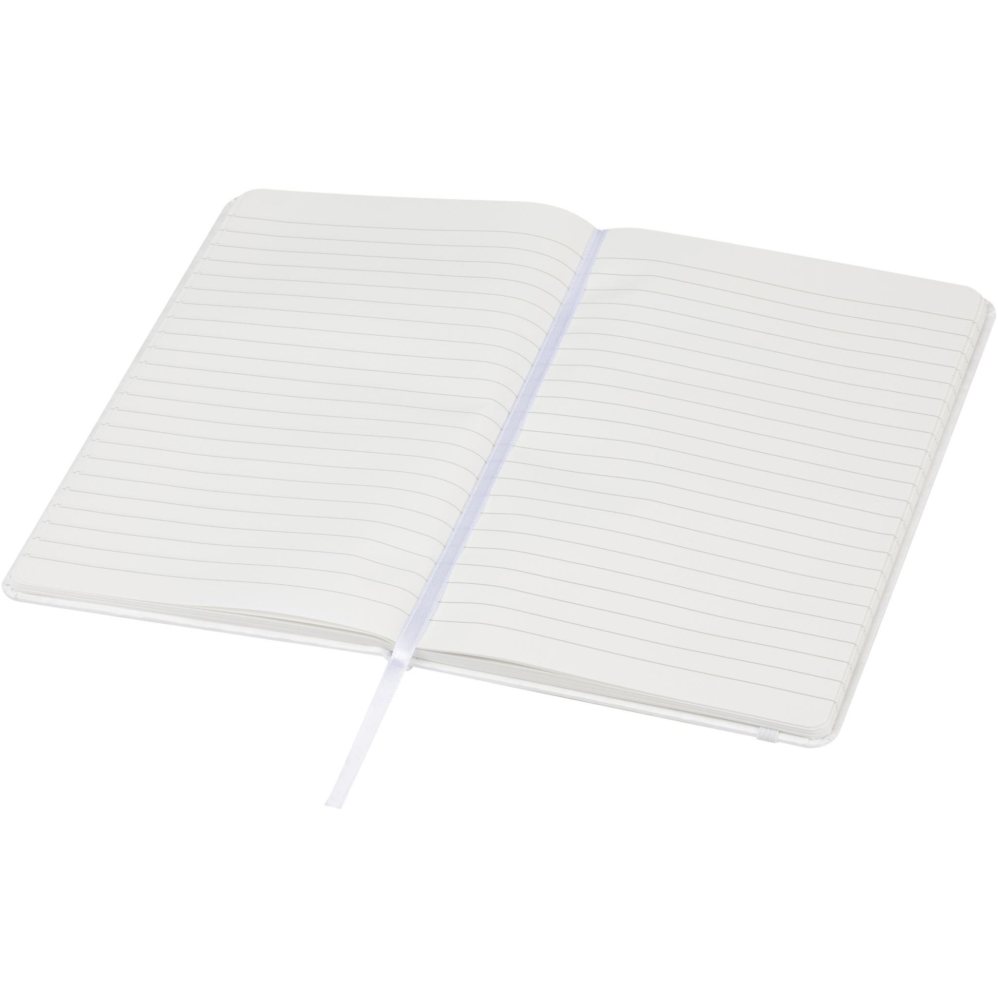 A5 size tear resistant notebook with inner pages made from stone. Stone paper is 100% tree free and the production process uses less energy compared to recycled or new pulp paper. It's water resistant so liquids spilled can easily be wiped off. Features a colour matching ribbon marker and elastic band and 60 sheets 120 g/m² lined stone paper. Packed in a cardboard sleeve.