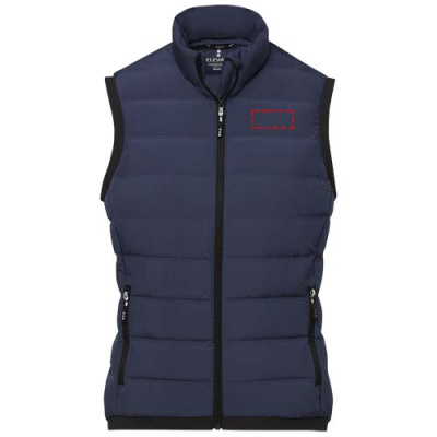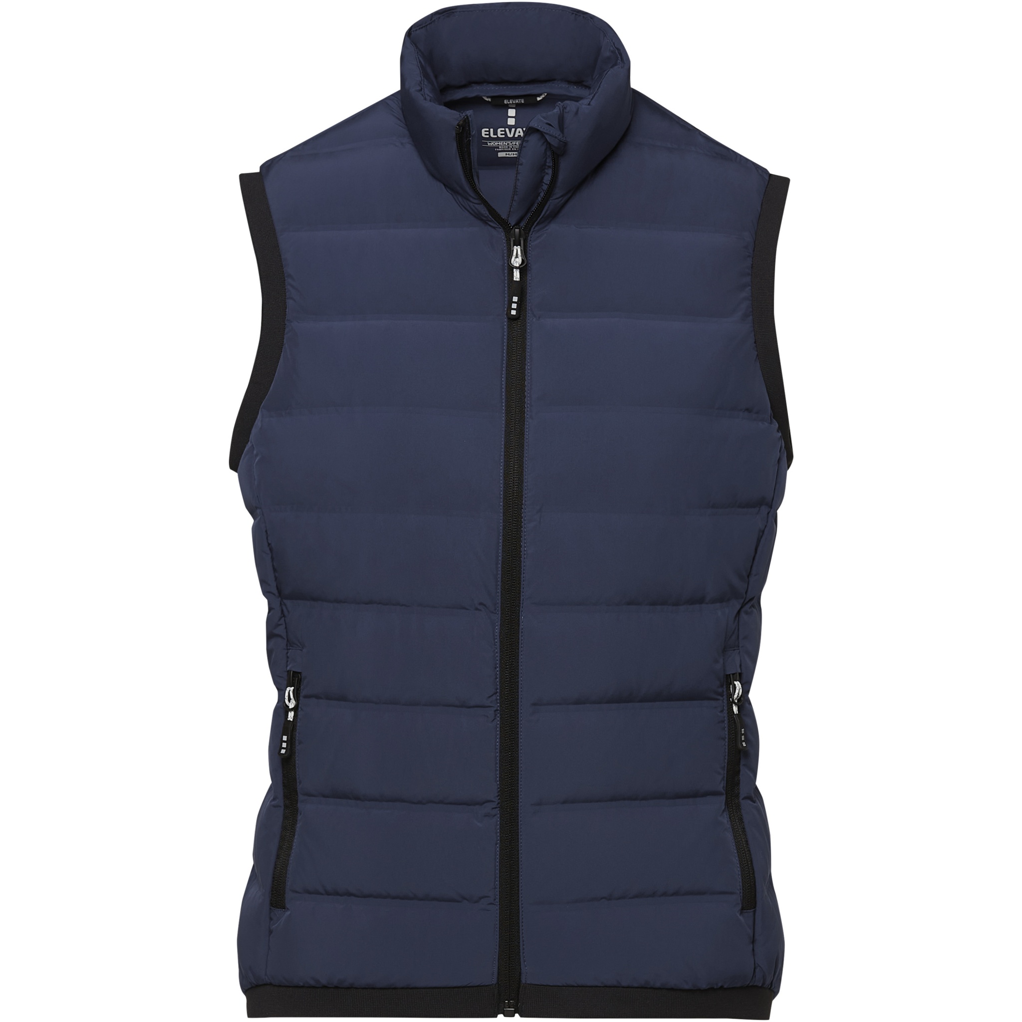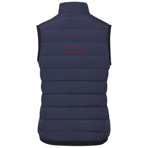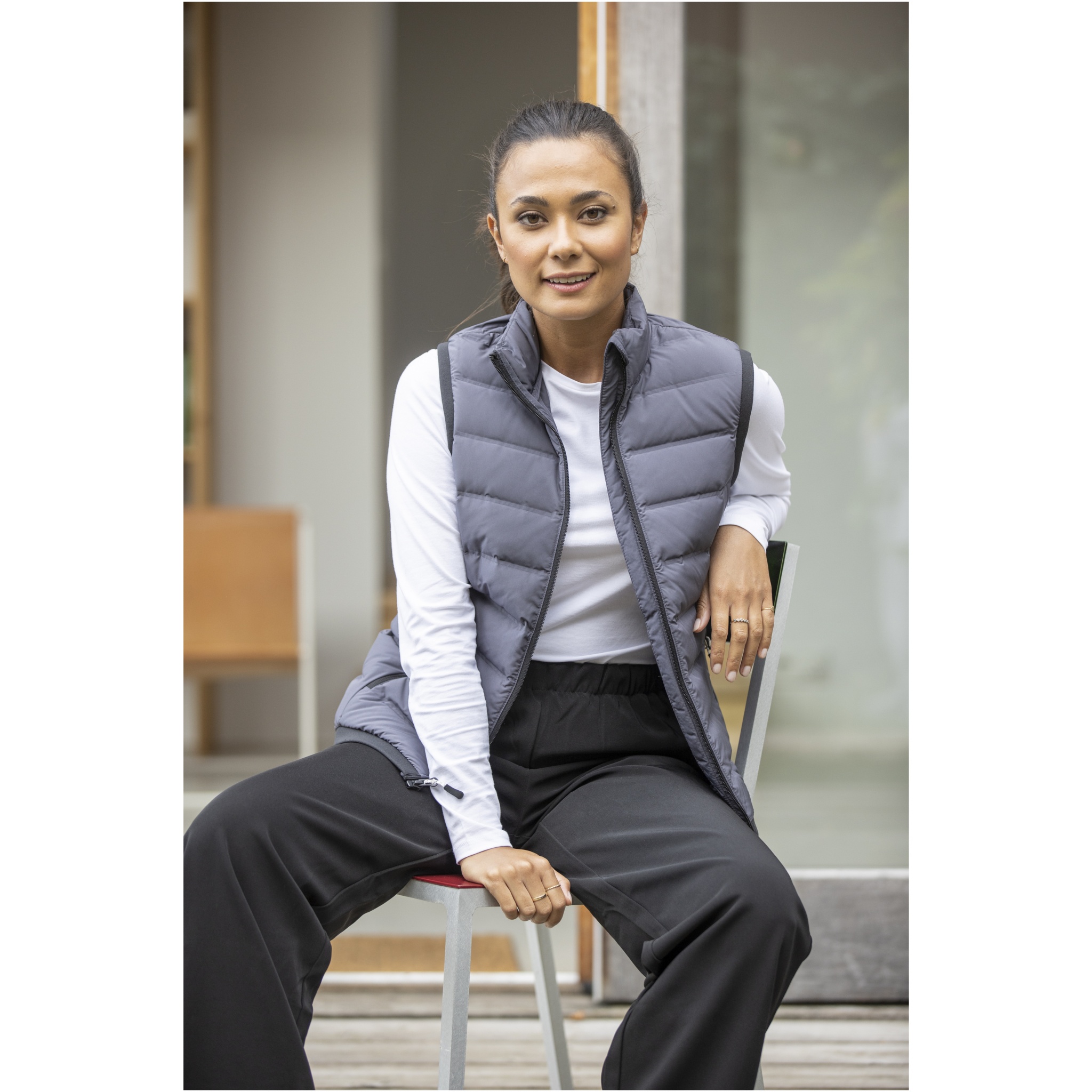 The Caltha women's insulated down bodywarmer – a versatile and eco-friendly outerwear piece. Made of 164 g/m² 750T woven double layer pongee fabric in polyester. The matte fabric in combination with heat seal quilting gives the bodywarmer a modern look while enhancing the overall insulation. Embrace eco-consciousness with RDS certified recycled down insulation of recycled down and recycled feathers, providing warmth without compromising on ethical standards. With an inner storm flap, chinguard, and flat knit elasticated rib cuffs, this bodywarmer offers maximum protection against the elements. The front pockets with zipper closure add convenience and functionality. Embrace both style and ethical values with the Caltha bodywarmer, perfect for any outdoor adventure or daily wear. This bodywarmer is designed with a fitted shape for a feminine look.