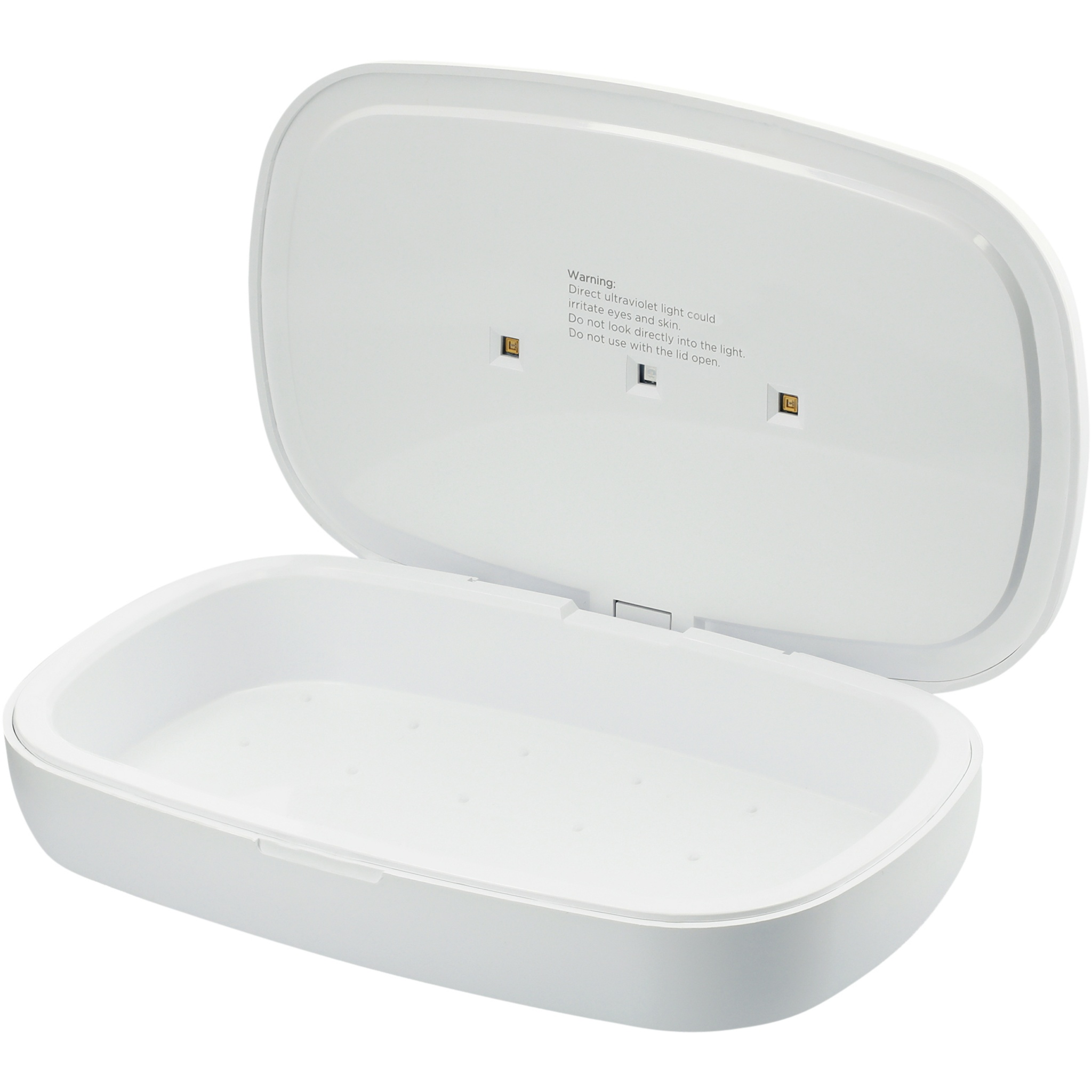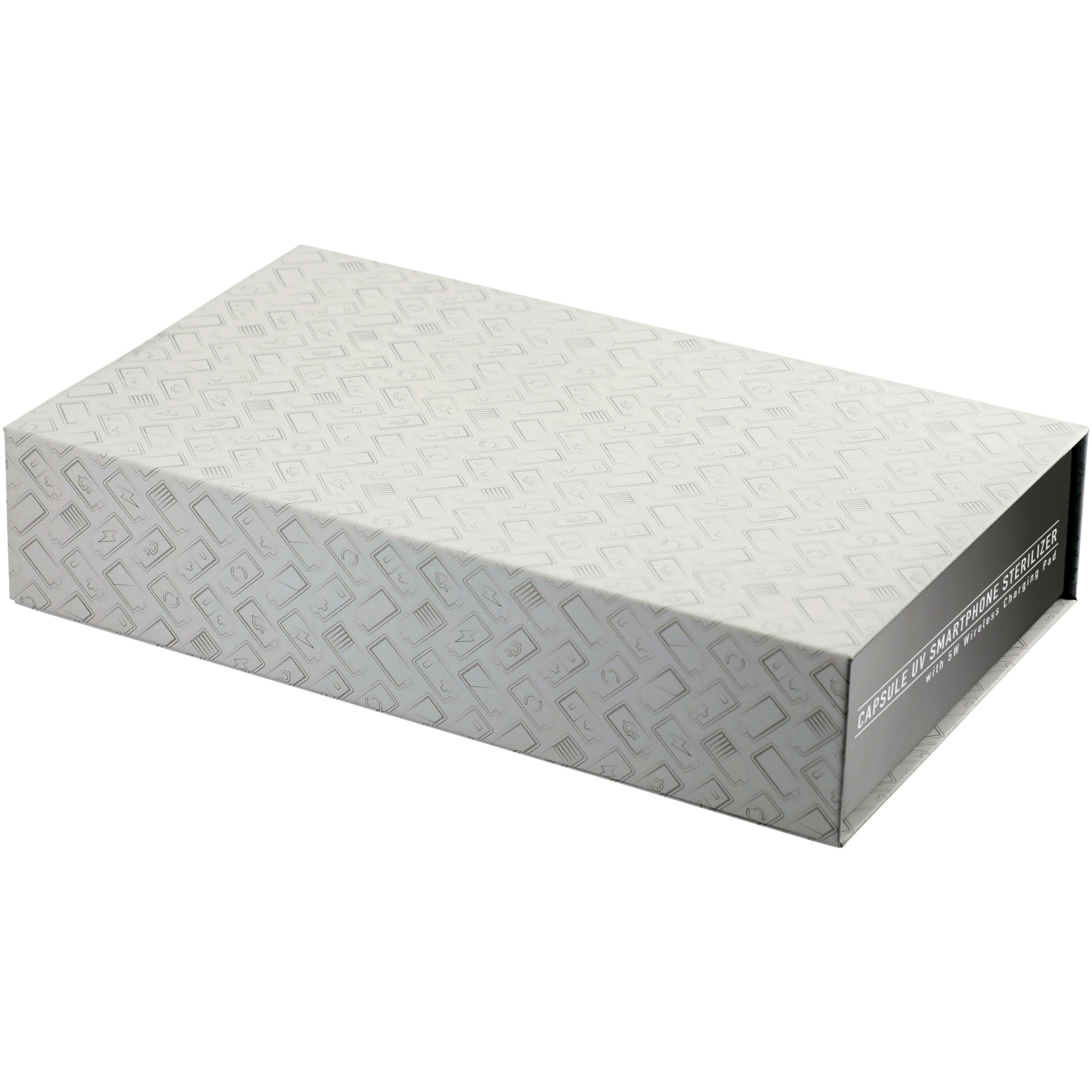 The Capsule UV smartphone sanitizer with 5W wireless charging pad can charge and clean your smartphone thanks to the built-in UV-C LED lights. There are 2 levels of sanitizing available. Press the button once for a short 90 second sanitation. Press the button twice for a 5-minute-deep clean sanitation. Next to smartphones, the Capsule can sanitize anything that fits inside the box, such as keys, earbuds, and other personal belongings. It has been tested to eliminate up to 99.9% of bacteria such as Escherichia coli, Staphylococcus and Candida albican. The product cannot be powered on when the cover is open, to protect the user from UV light exposure. When the case is opened during the process of sanitizing, the sanitizer will immediately stop to prevent any eye/skin exposure. Packed in a premium gift box. Inner dimensions: 181 x 104 x 26mm.