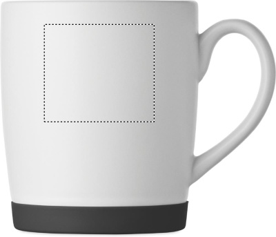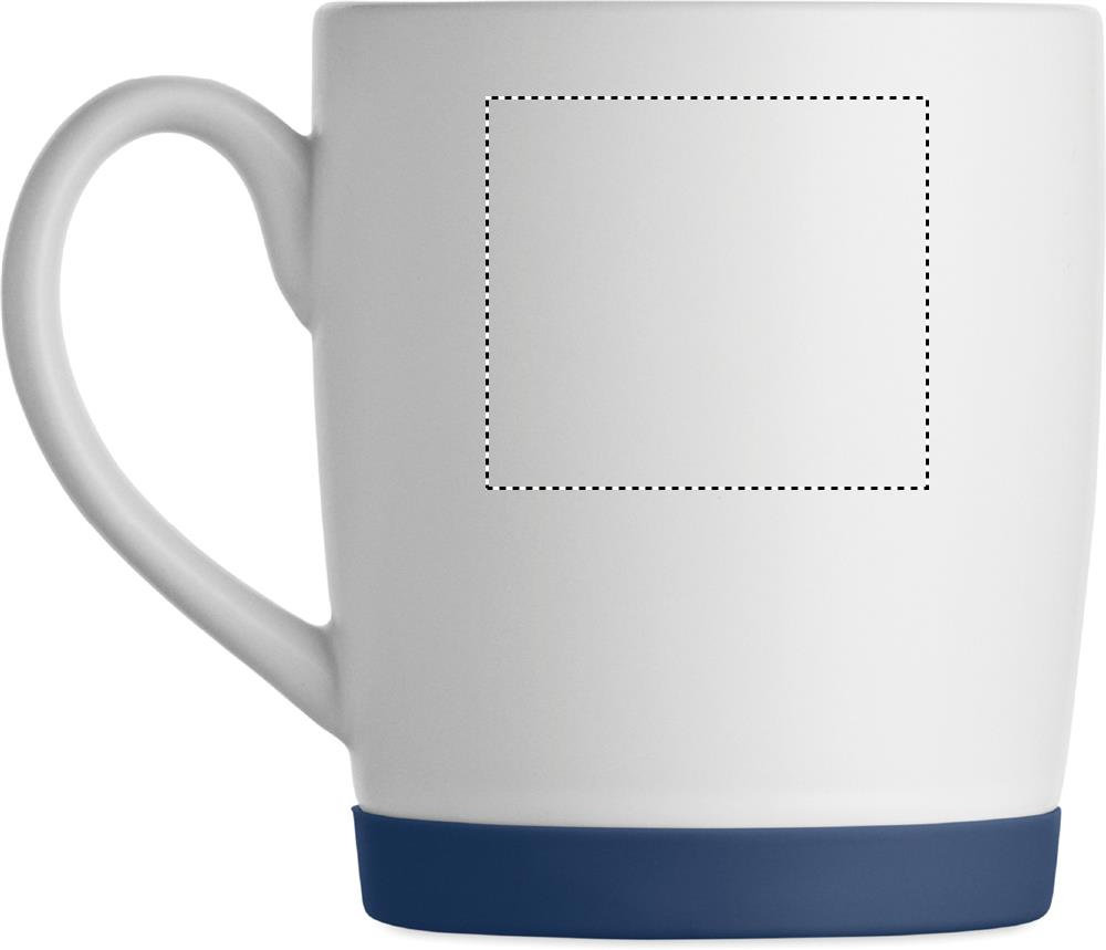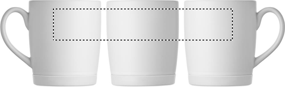 Ceramic mug with white matt finish and silicone base for stability. Capacity 300ml. Individual packing in white carton box.