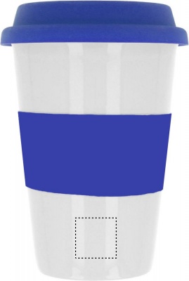 Single walled ceramic mug with silicone lid and wrap band. 400ml capacity. Ceramic transfer is dishwasher safe. As this is a single walled mug heat transfer can still occur.