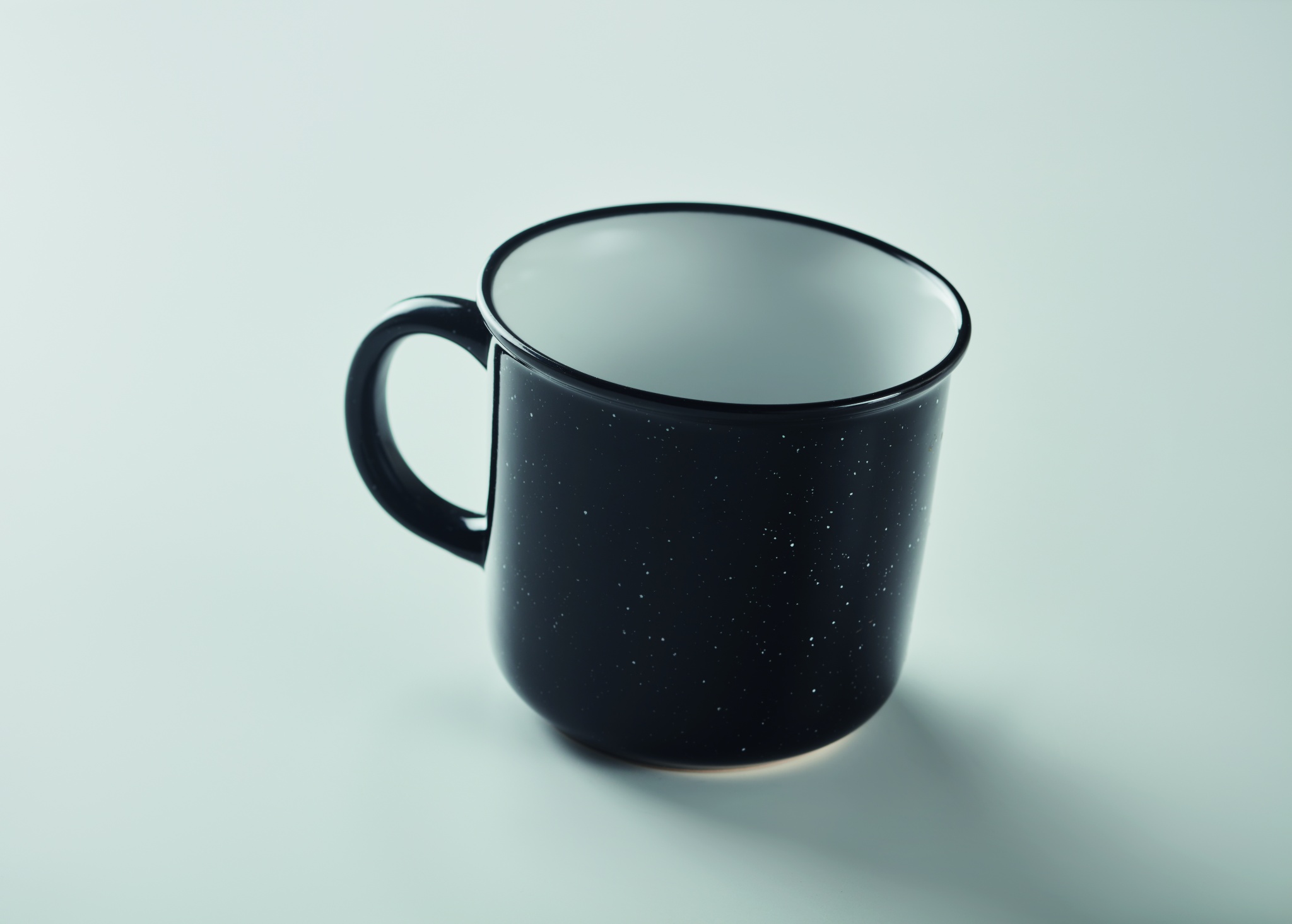 Large ceramic vintage style mug. Due to the spotted pattern, spots will be visible in the printed logo. Capacity: 400 ml.