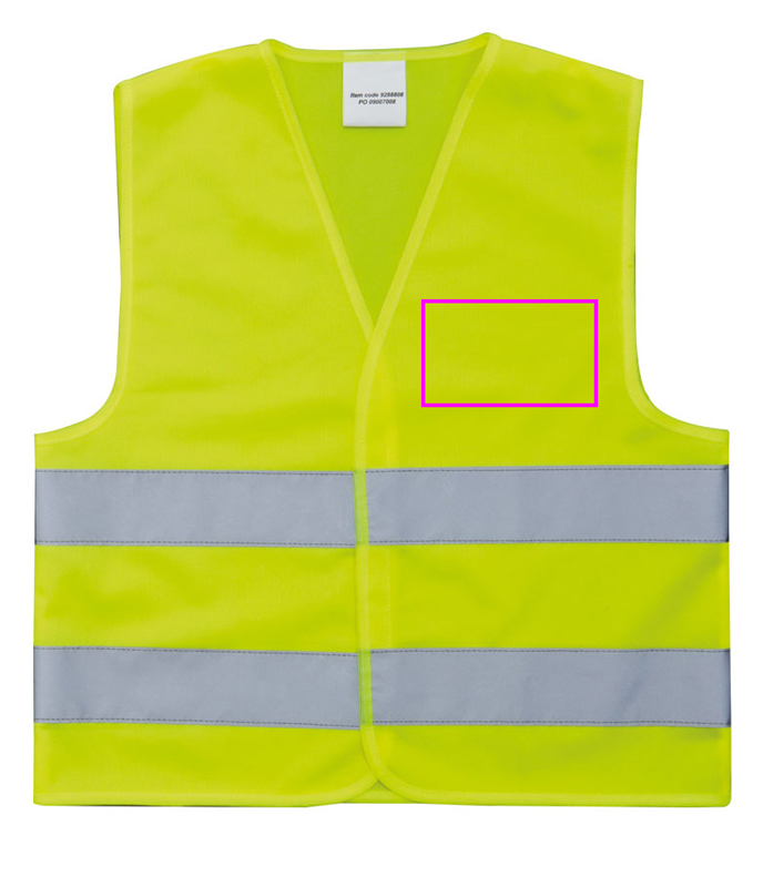For more safety! Even the smallest won't be overseen with this safety jacket. This safety jacket is the right companion in traffic or on the way to school. Needless to say that it complies with all EU standards. We will print your logo on the chest (heart side). Print on the back upon request. Single-packed in poly bag.