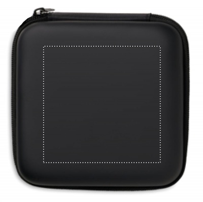 Computer accessories in a EVA/PU pouch that includes: 1 wireless mouse, 4 port USB 2.0 hub, 1 EU plug and 4000 mAh power bank. With micro USB charging cable included.