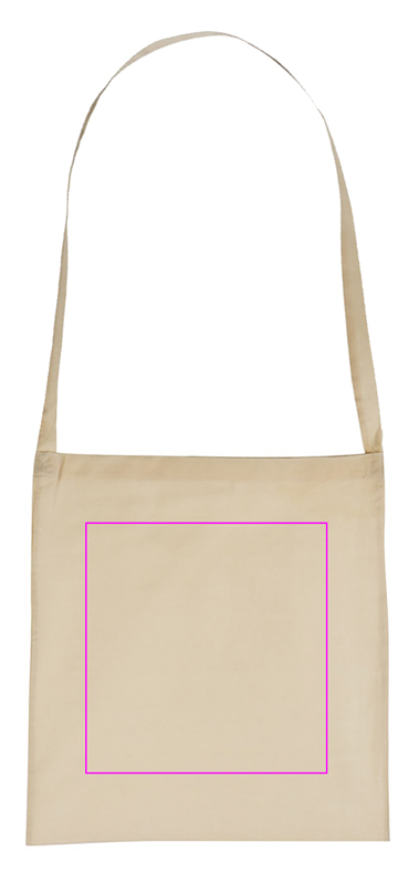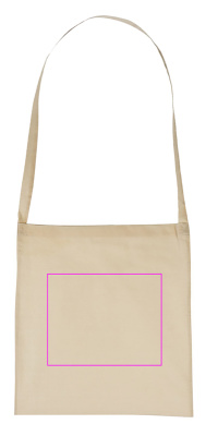 Shopping classic! Nature coloured cotton bag with one long handle. The sturdy material, of course washable, makes it a permanent companion for your customer. There is enough space on the large front for your logo, which we will print in screen printing. Every additional colour 50% of the following printing price. Set-up costs are per colour.