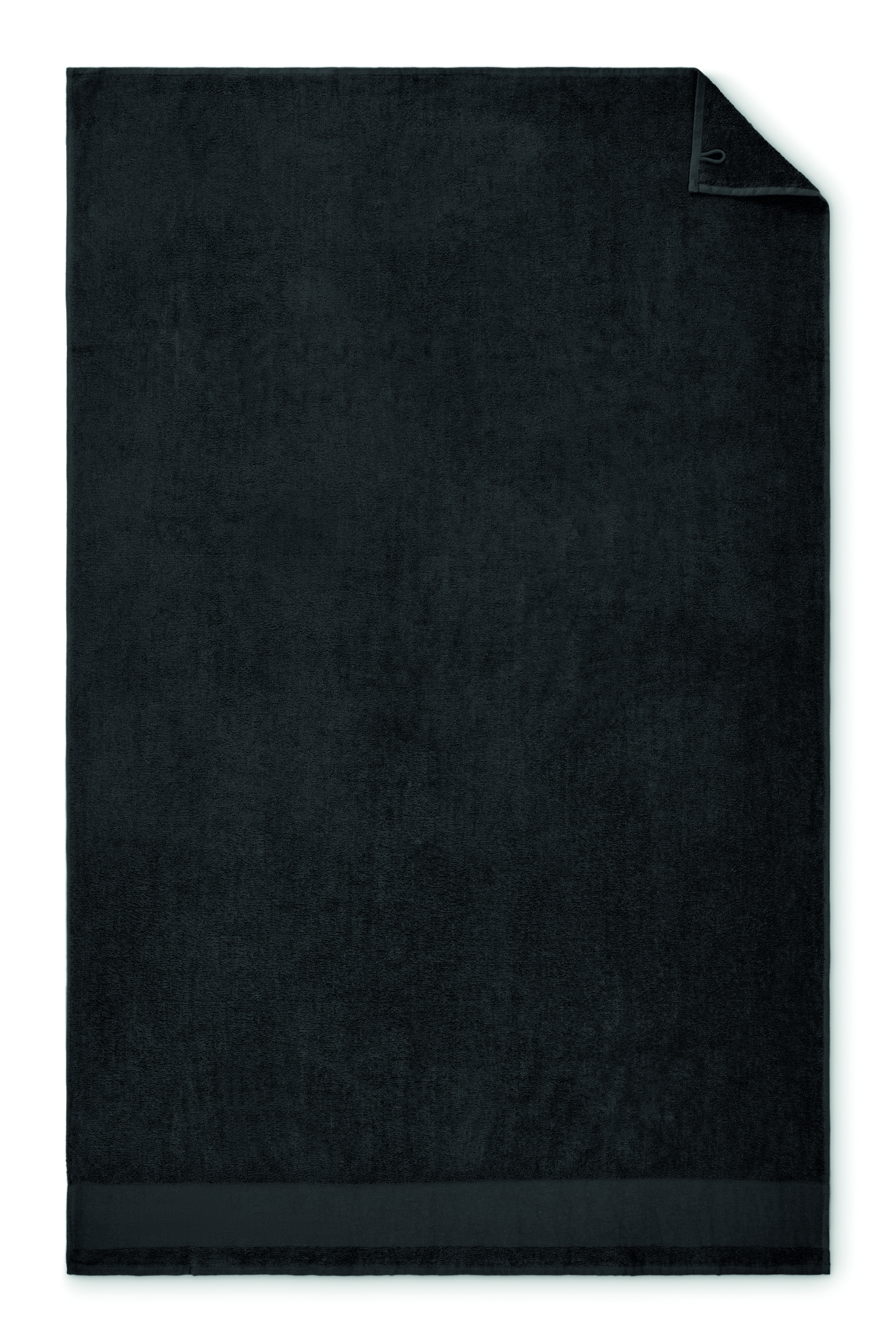 Bath towel made of 100% cotton, 380 gr/m² fabric with cotton hanger loop. Soft and absorbent design. Size 100 cm x 150 cm.