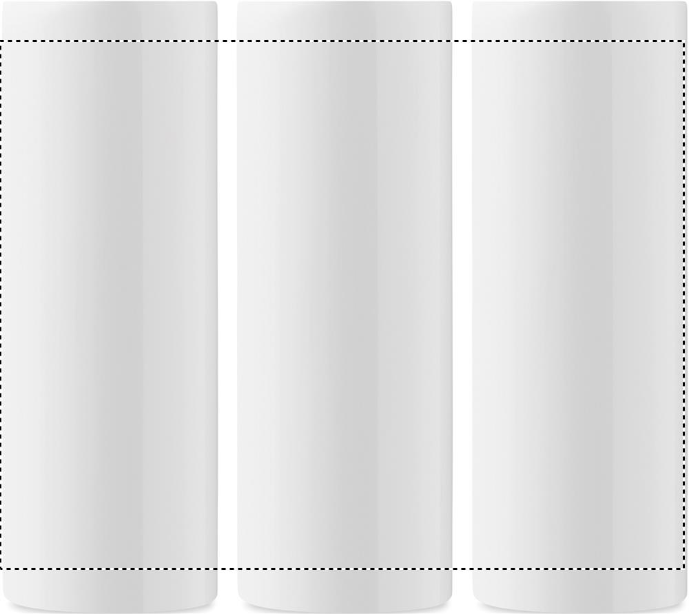 Double wall stainless steel tumbler and PS lid with mouthpiece with special coating for sublimation print. Capacity: 590 ml.