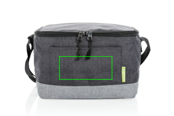 With a 6-can capacity, there is plenty of room to store your food and drinks. Additional features include a front pocket and shoulder strap. Made of sustainable RPET. Registered design® Exterior: 100% 600D melange RPET / Lining: 100% PEVA