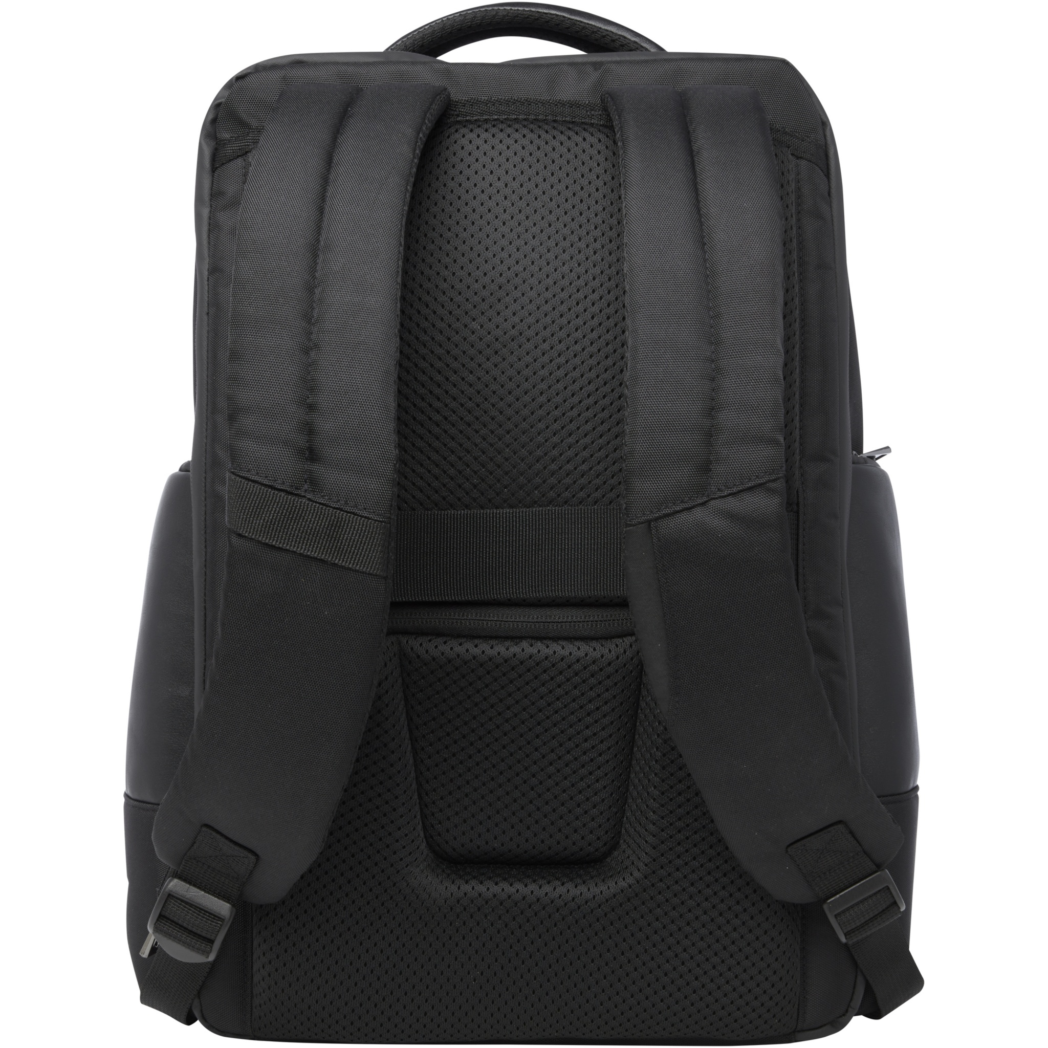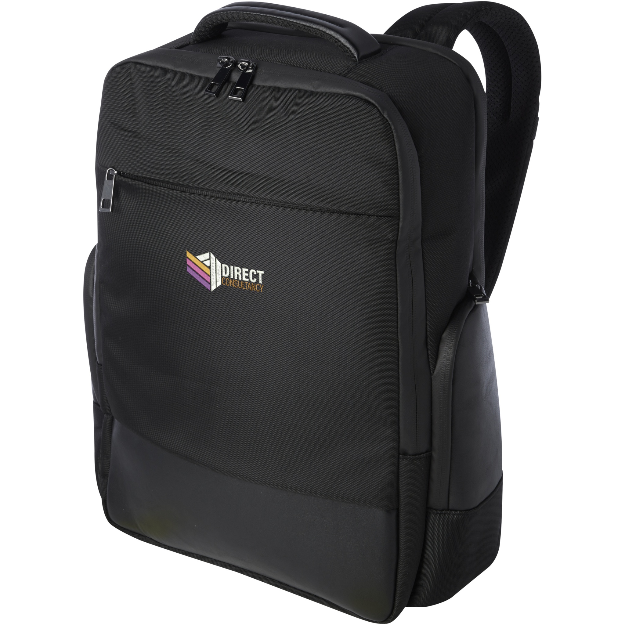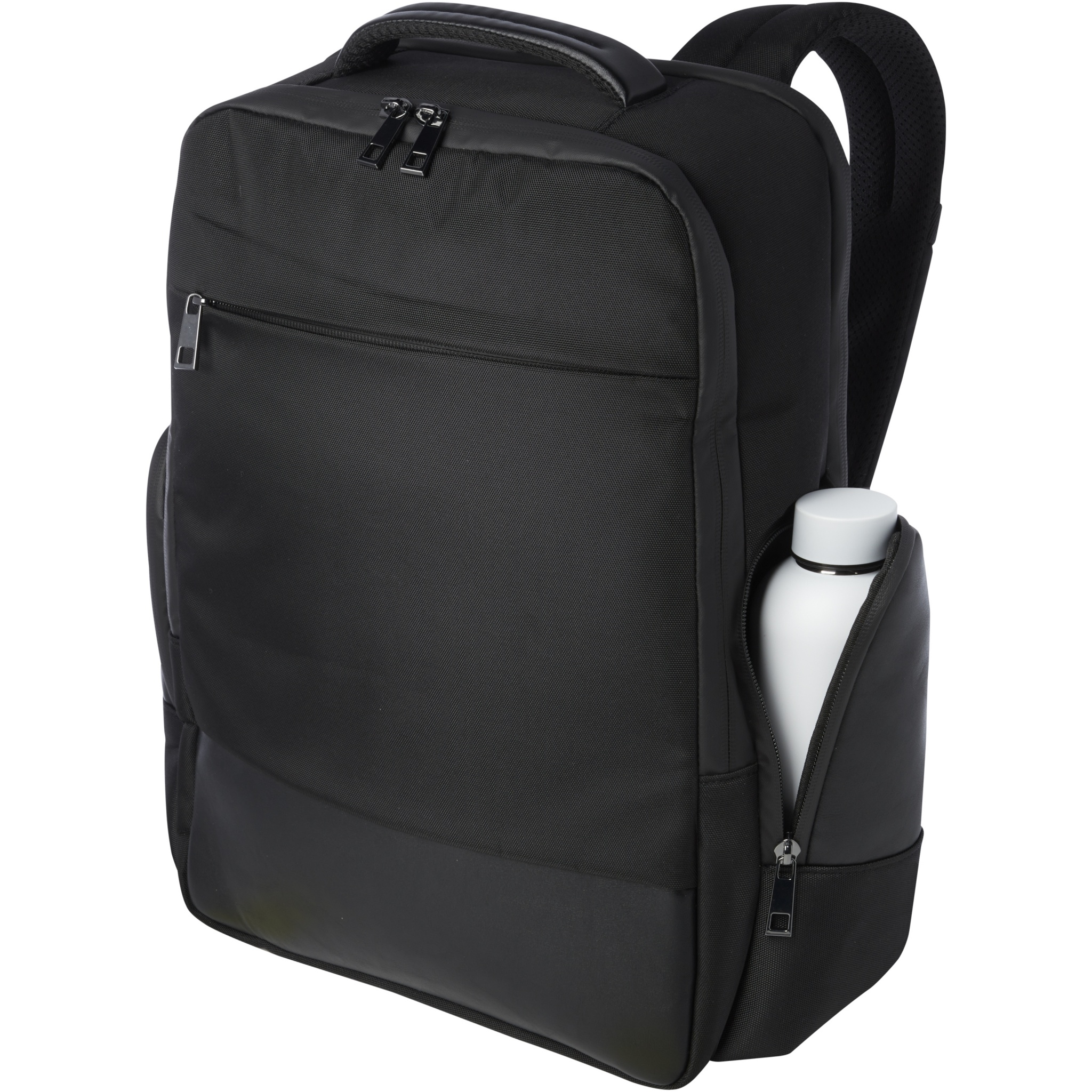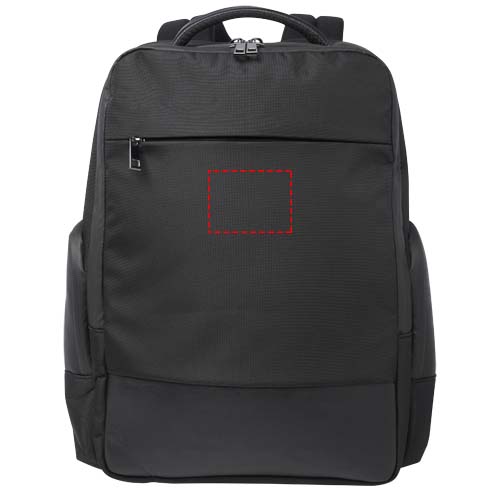 The sleek, large and sturdy GRS certified Expedition Pro laptop backpack is a perfect companion for professionals on-the-go. It is made from water repellent 900D RPET, coupled with premium PU elements and RPET lining. It features a dedicated 15.6" laptop compartment, a tablet sleeve, a spacious main compartment with integrated leak-proof pocket for toiletries, multiple organisational and side pockets, a zipped front pocket and a hidden pocket right beneath the luggage strap on the back. Constructed with padded and adjustable shoulder straps, an integrated card sleeve pocket, a sunglasses loop, moulded air mesh backing as well as a padded handle, ensuring maximum carrying comfort and convenience. Volume capacity: 25 litres. PVC free.