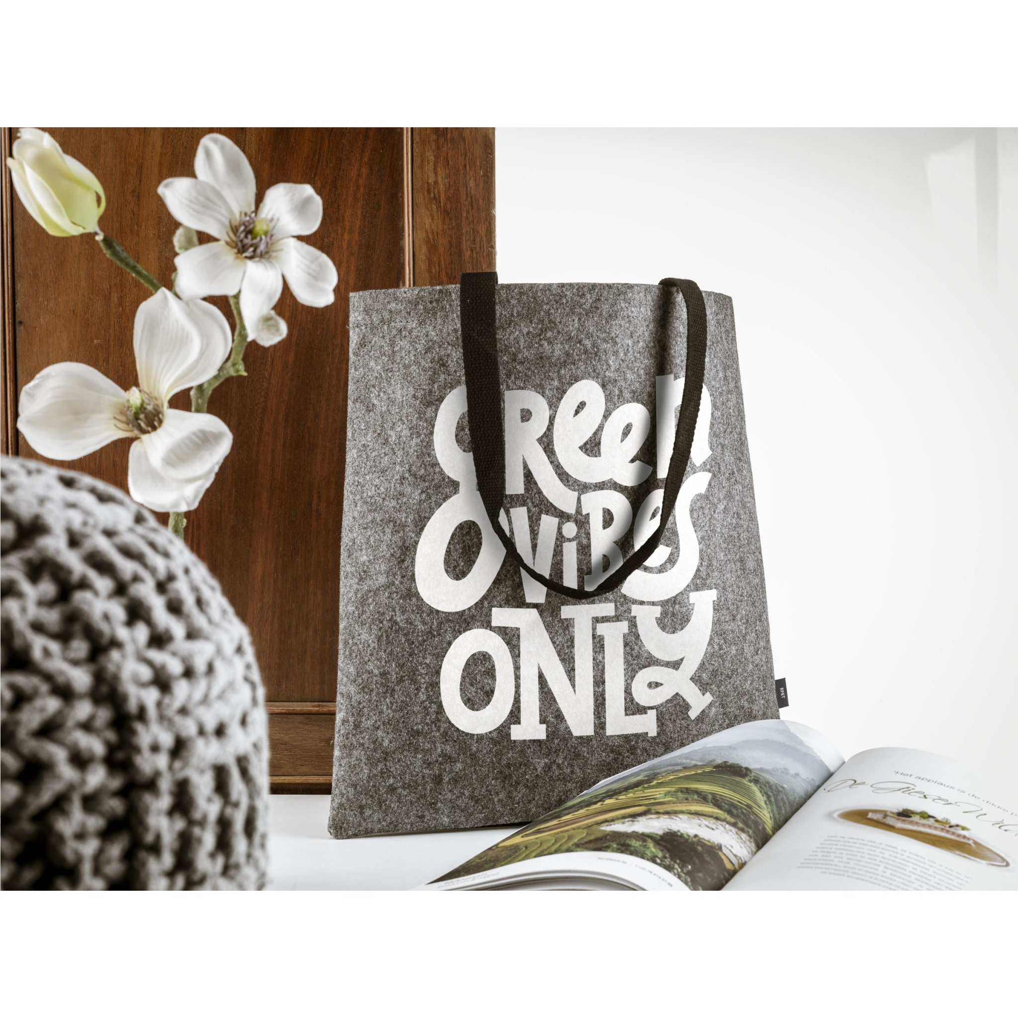 WoW! Tough shopper made from thick RPET high-quality felt. With long, woven cotton handles. GRS-certified. Total recycled material: 75%.