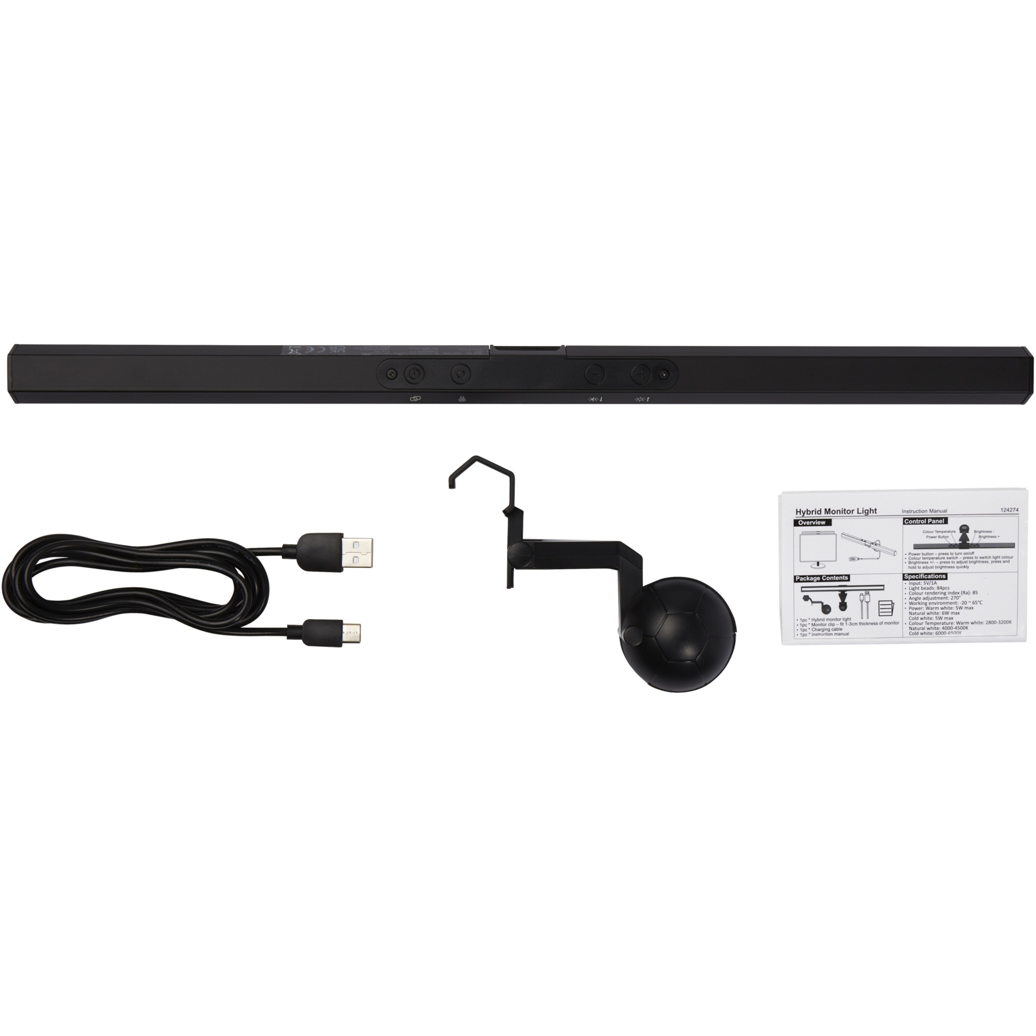Monitor light with adjustable angle and an asymmetrical optical design that only illuminates the desk and eliminates reflective glare off the screen found with most regular desk lamps. With 84 high-quality LED beads, this lamp emits uniform, soft and non-flickering light, which can relieve eye fatigue and protect your eyes. The light fits any monitor with a thickness from 3mm to 10mm, without a need for screws that may damage the monitor. Adjustable brightness from 5% to 100% with a 2800K~6500K colour temperature. The warm light lets you relax and the cool light allows you to concentrate and boosts work efficiency. The color rendering index of the monitor light is more than 85, which can restore most screen colors. Delivered in a premium kraft paper box with a colourful sticker.