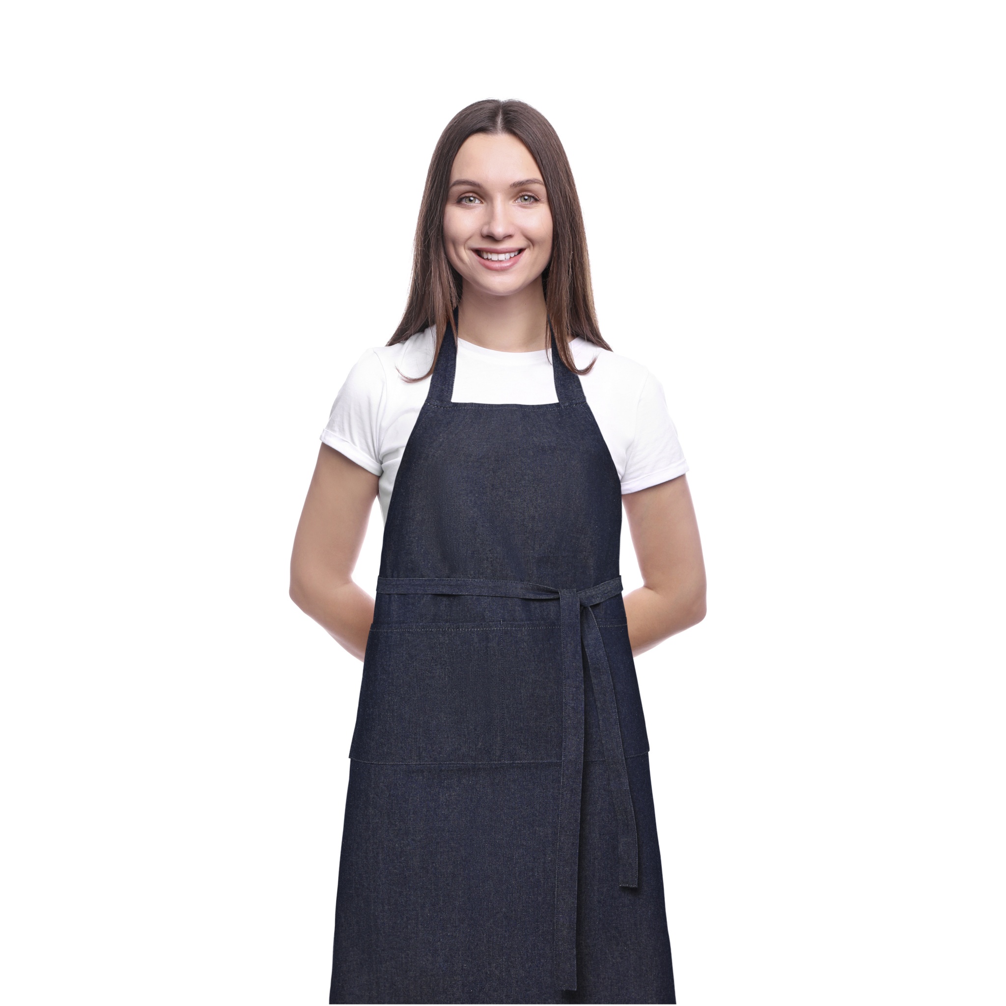 The Jeen apron is a great environmentally friendly companion in the kitchen! It's made of 200 g/m² 100% recycled denim making it thick and sturdy, and a comfortable to wear sustainable apron. It features 2 adjacent pockets (each 22 x 20 cm), and a 1 metre tie-back closure.