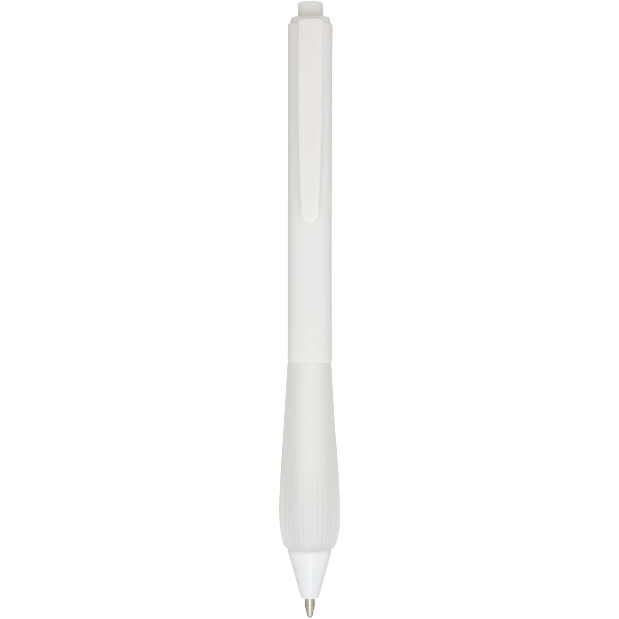 Recycled plastic ballpoint pen with a rubberized barrel, and grip made of TPR. Ink colour: Black. Writing length: 1000 metres. Nib size: 1.0 mm.