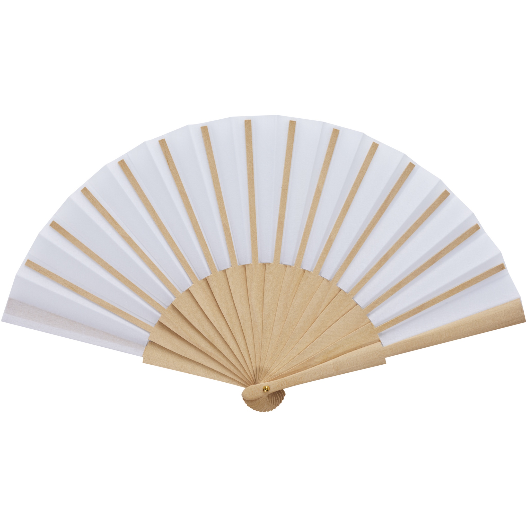 Hand fan made from wood and polyester, available in a wide range of colours.