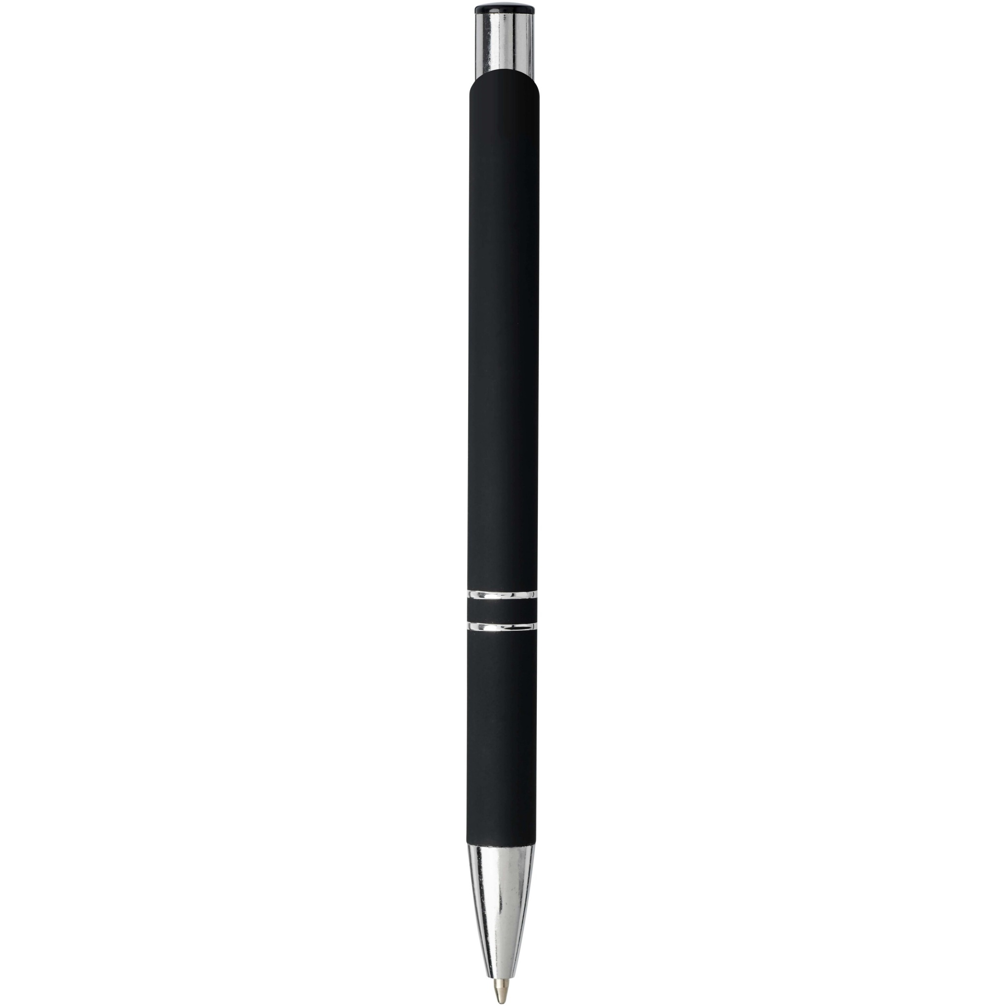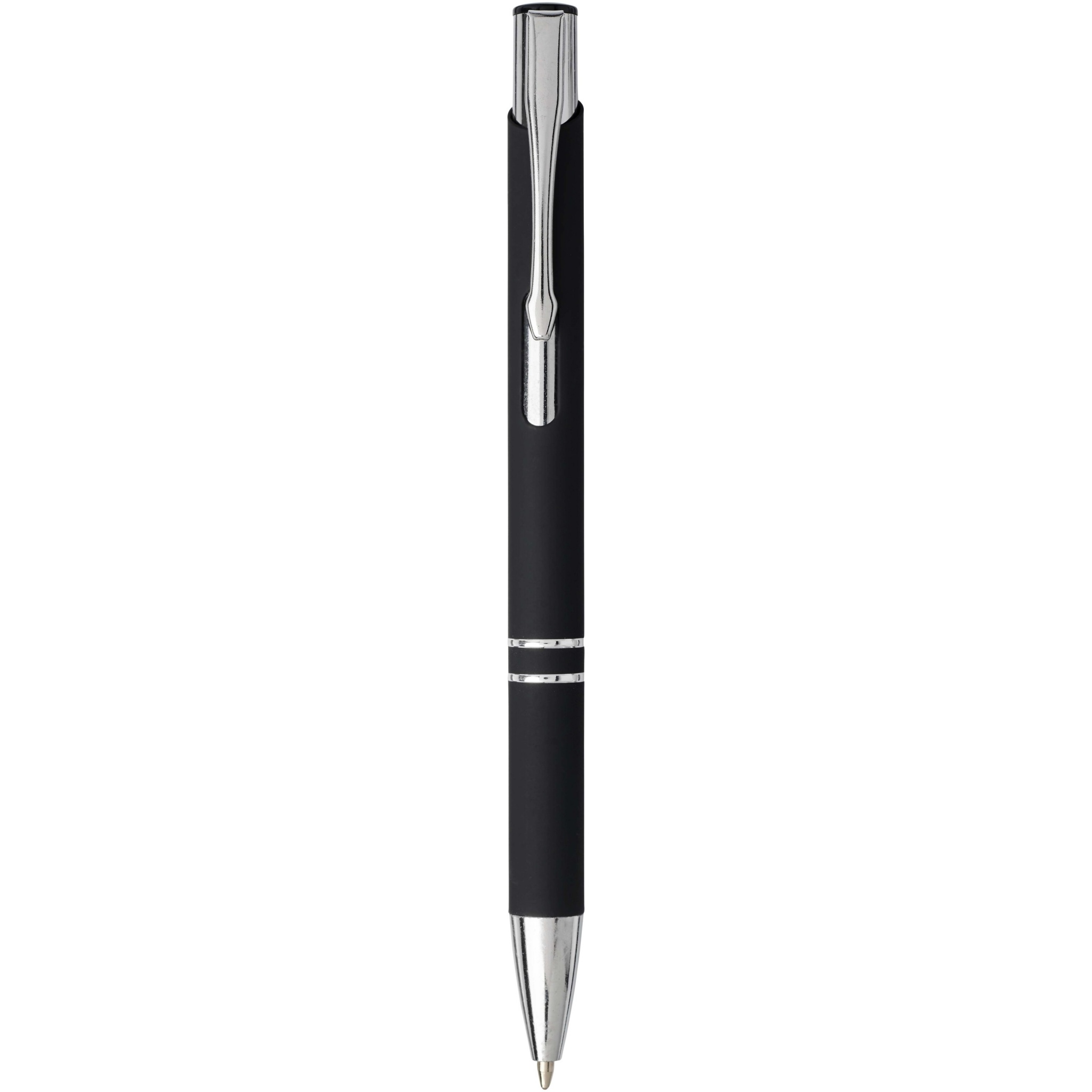 Stylish click action mechanism aluminium ballpoint pen with soft-touch coating. When laser engraved the shiny chrome underlayer of the pen will appear. The extensive and popular Moneta range is available in many different styles and finishes.