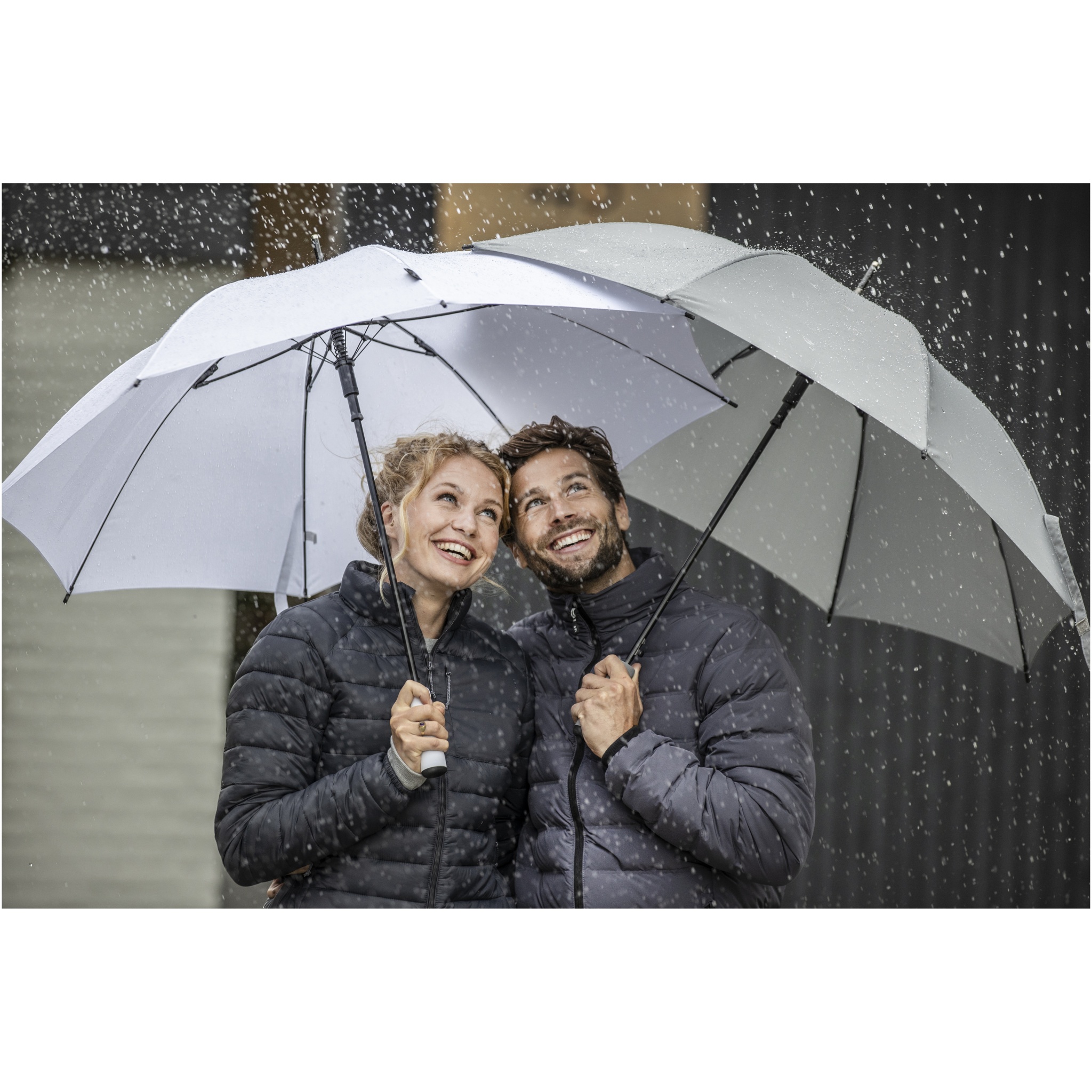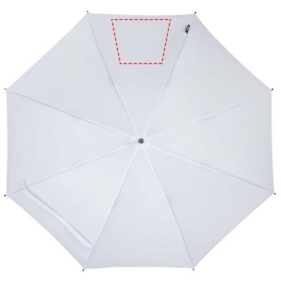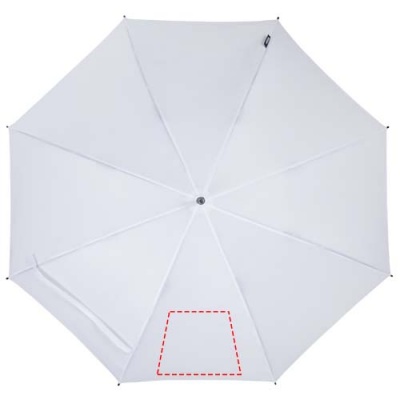 23” automatic opening umbrella with a recycled PET pongee polyester canopy. It has a sturdy metal shaft, fiber glass frame, and a comfortable EVA handle with colour matching end. Large print area on each of the panels.