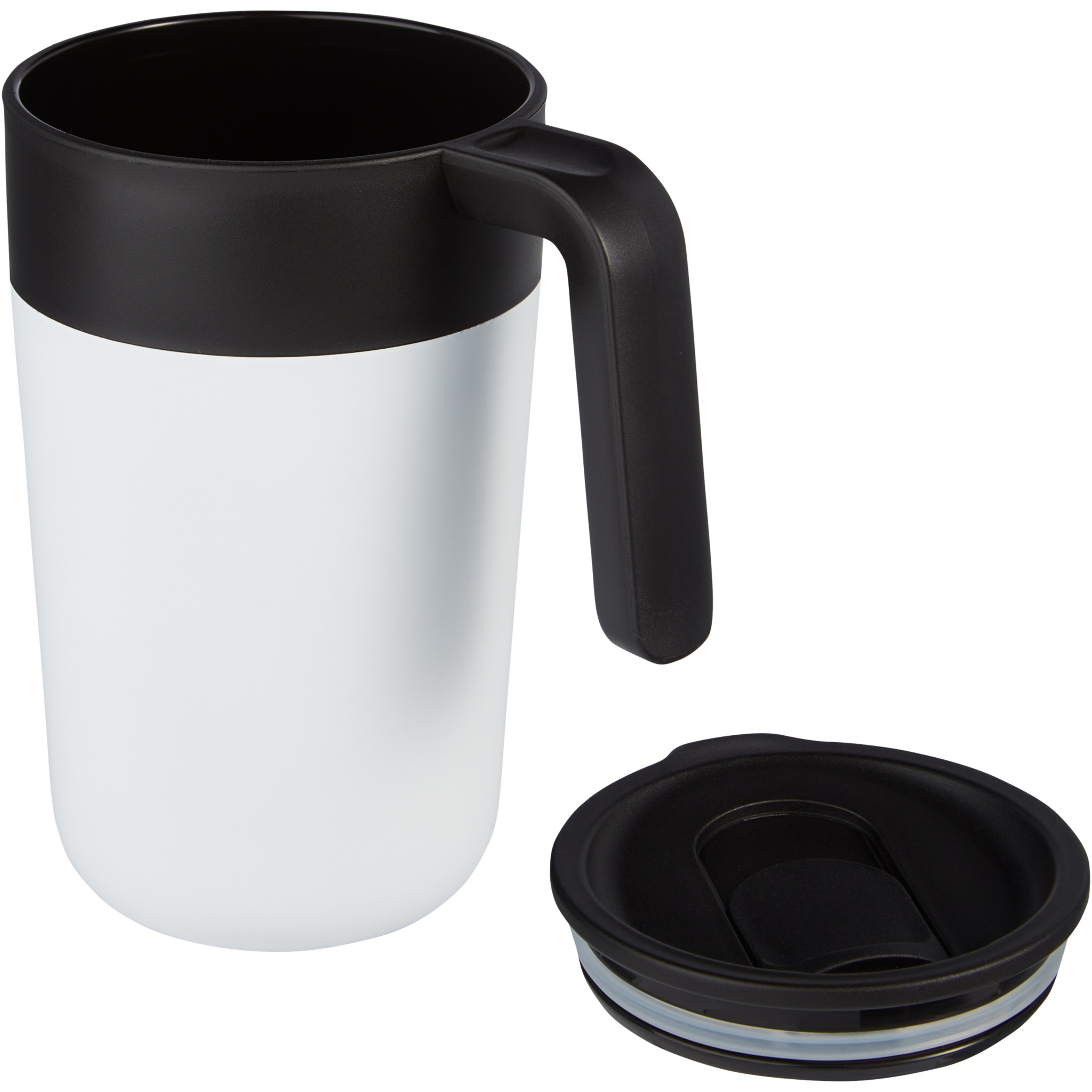 The stylish Nordia mug is constructed with stainless steel exterior and sustainable recycled PP interior. The inner lid, slider, and handle are also made of recycled PP from certified and responsible sources. The lid has a sliding closure, making this mug perfect for enjoying your drinks on-the-go. BPA-free and tested and approved under German Food Safe Legislation (LFGB), and tested for phthalates content according to REACH regulations. Volume capacity is 400 ml. Hand wash recommended.