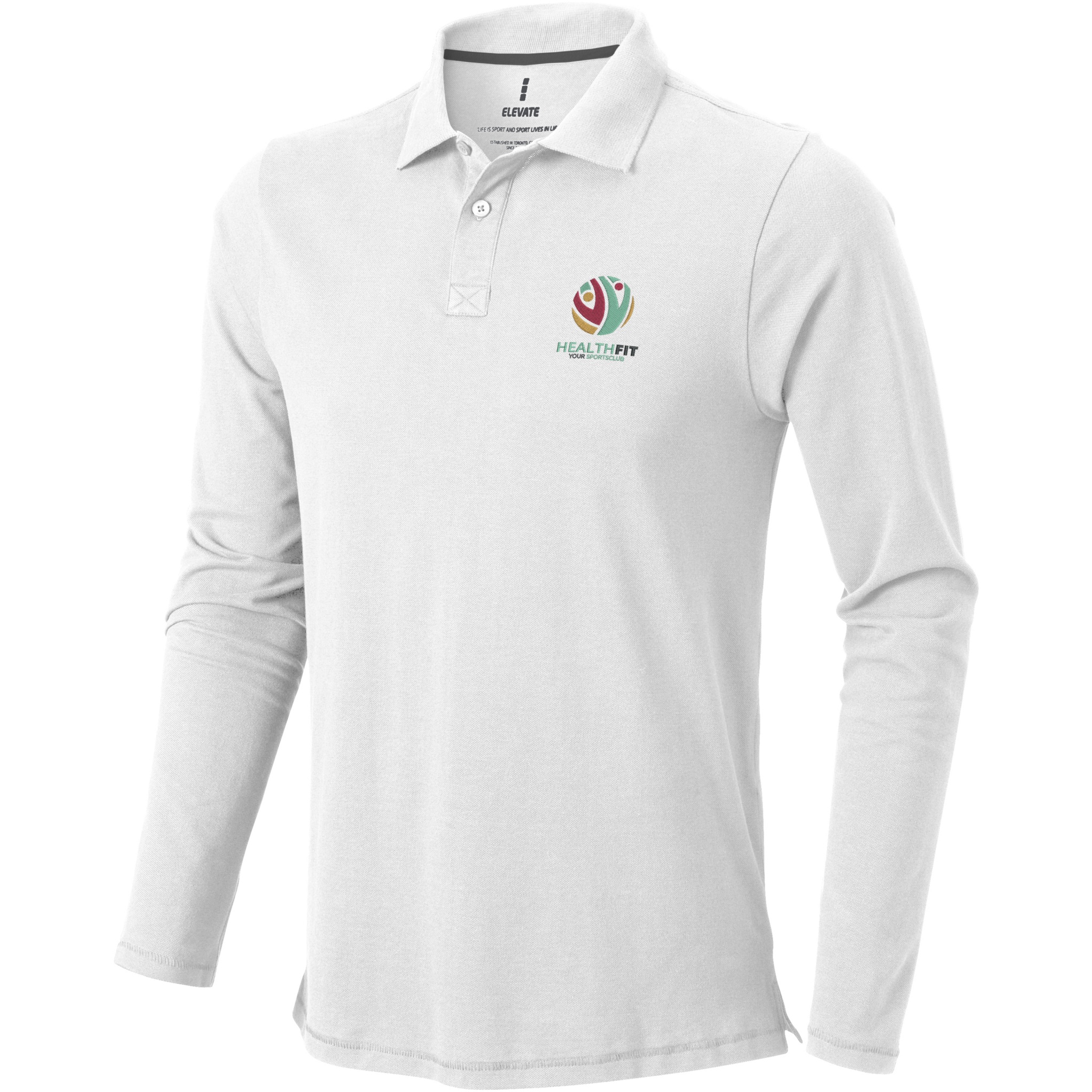 Oakville long sleeve men's polo, White