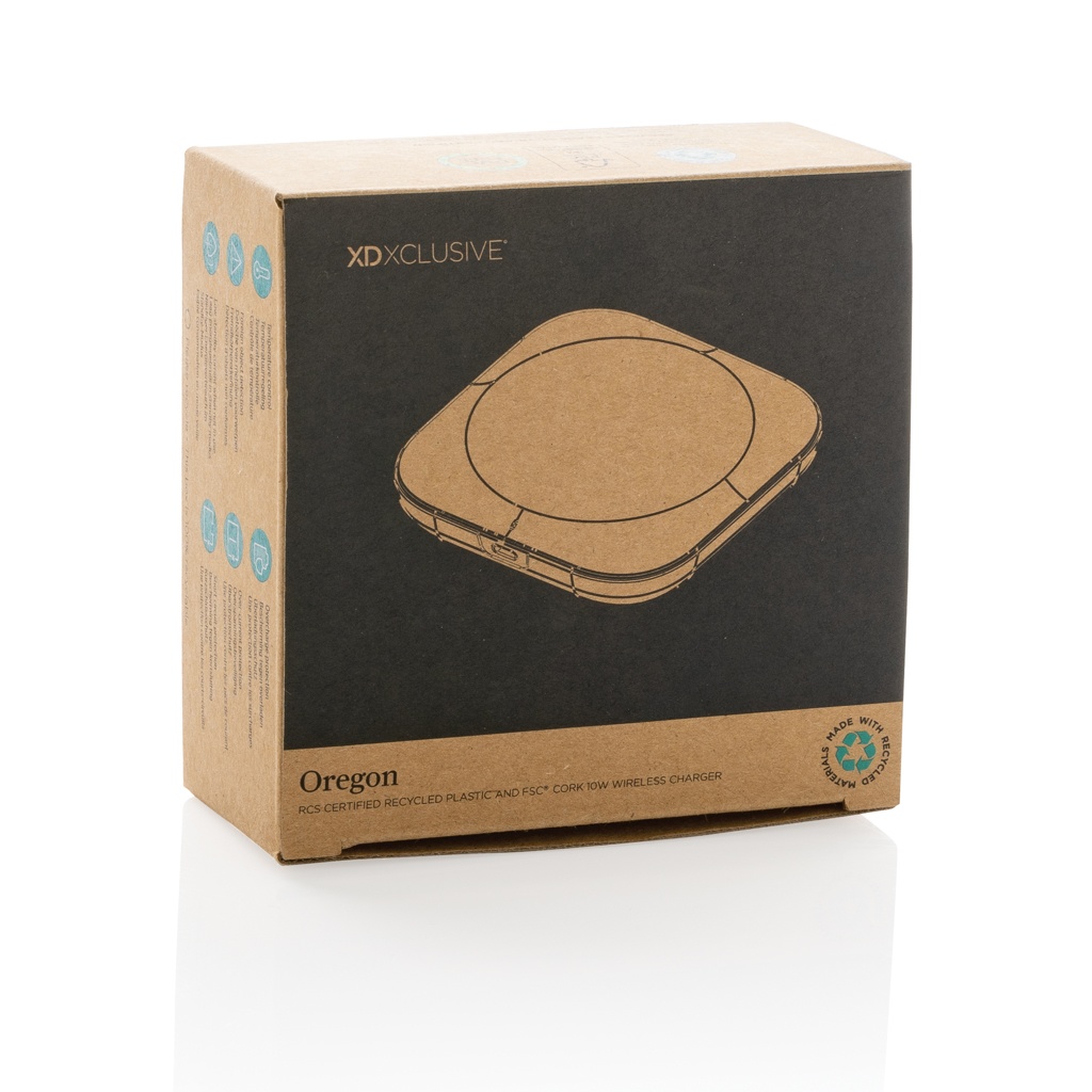 Products Small Giveaways Oregon RCS recycled plastic and cork 10W wireless