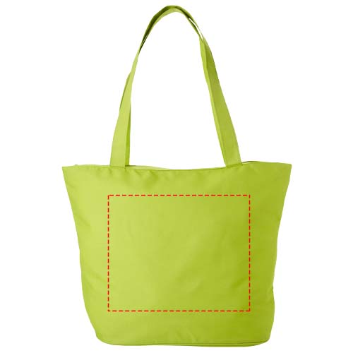 Whether going to an event, to the beach or grocery shopping, the Panama zippered tote bag is the perfect multi-purpose bag. The bag is made of durable 600D polyester and features a zippered main compartment to keep all items in the bag protected from outside influences. The small zipper pocket inside the bag provides space for some small items, such as a pen or keys. With the 34 cm long handles the bag is easy to carry over the shoulder. Resistance up to 10 kg weight.