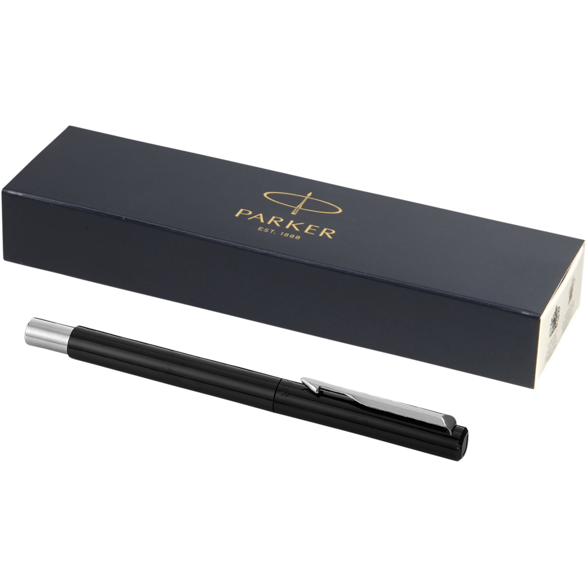 Simple, essential and reliable, that is the Vector rollerball pen from Parker in essence. The Vector pen is designed with precision so that people can rely on this pen every day. It makes this the perfect gift for any celebration and can be personalised with various printing options. The pen is refillable and thus a sustainable option. The Vector is made of stainless steel and plastic and comes with a rollerball refill in a Parker gift box.