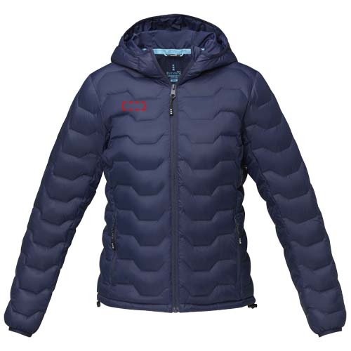 The Petalite women's GRS recycled insulated jacket – a sustainable and stylish outerwear choice for environmentally-conscious adventurers. Crafted with precision and care, this jacket is fully GRS certified, making it a more sustainable addition to your wardrobe. Designed for comfort and warmth, the honeycomb quilted pattern shows a modern design and enhances insulation, while the GRS certified recycled nylon dull cire 380T woven fabric provides durability and weather resistance. Even the trims and accessories, including zippers, are thoughtfully sourced from recycled materials, ensuring every aspect of this jacket contributes to a greener planet. Equipped with practical features, the Petalite jacket has front pockets with zippers and an inside left bottom pocket for secure storage. The inner stormflap with chin guard shields you from the elements, while the elastic drawstring with adjustable cord lock in the bottom hem allows for a customised fit. The elastic binding on the hood ensures added protection against cold winds. The RDS certified recycled feathers provides warmth without compromising on ethical standards. With GRS certification guaranteeing a 100% certified supply chain, this garment truly represents an environmentally conscious choice. This jacket is designed with a fitted shape for a feminine look.