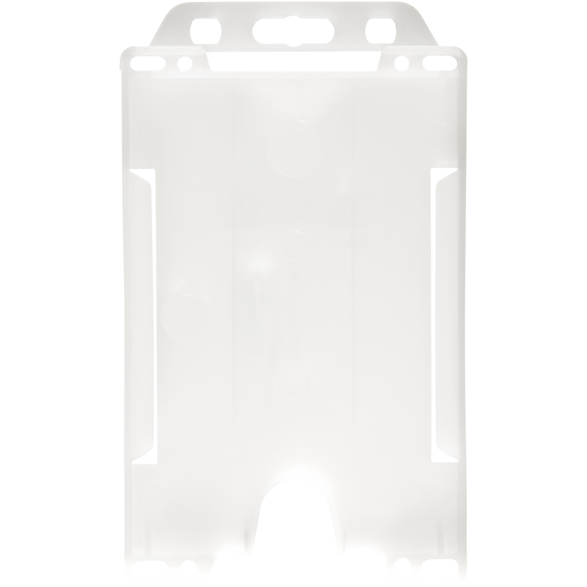 Portrait card holder made from recycled plastic. Ideal for exhibitions, workplaces, and networking events. Suitable for standard business card and credit card sized passes. Due to the nature of recycled plastic, colour shades may vary slightly, and there may be specks of colour. Made in the UK.