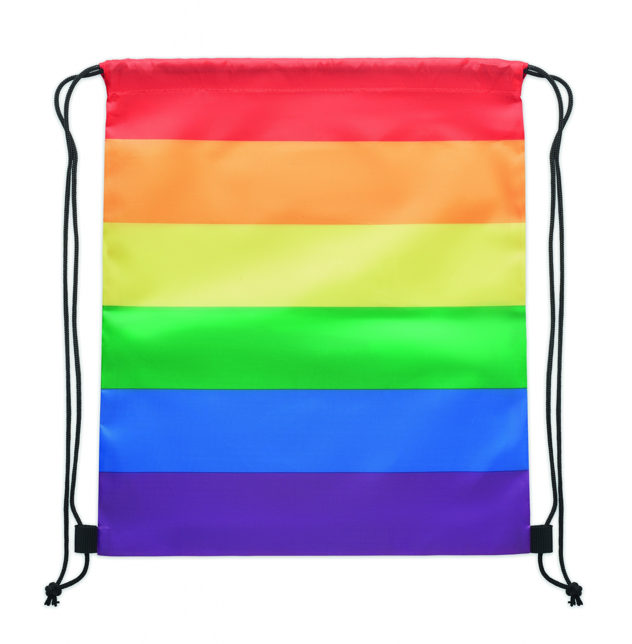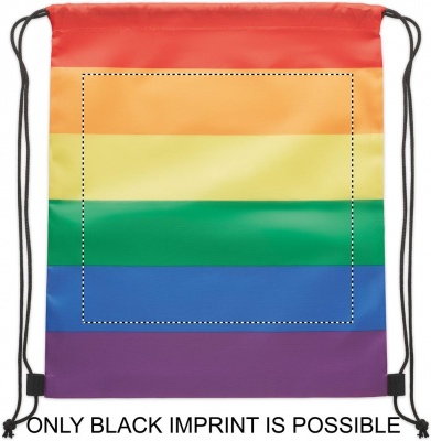 Rainbow Drawstring bag in 210D RPET polyester with PP strings.