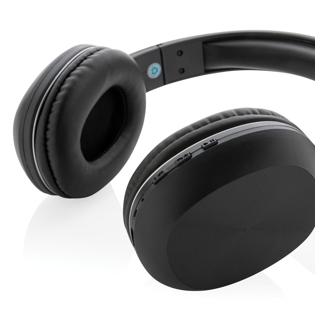 Comfortable wireless headphone that uses BT5.1 for super smooth connection and long lasting playtime. Made with RCS (Recycled Claim Standard) certified recycled ABS.Total recycled content: 73% based on total item weight. RCS certification ensures a completely certified supply chain of the recycled materials. The over ear design of the earbuds allows a perfect sound experience. The built-in 200 mah lithium battery that allows a play time up to 5 hours and can be fully re-charged in 1.5 hours. Operating distance up to 10 metres. Including mic to answer phone calls. Including GRS certified recycled TPE charging cable. Packed in FSC® mix packaging. Item and accessories 100% PVC free.