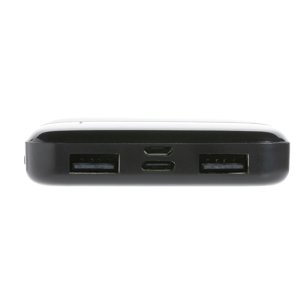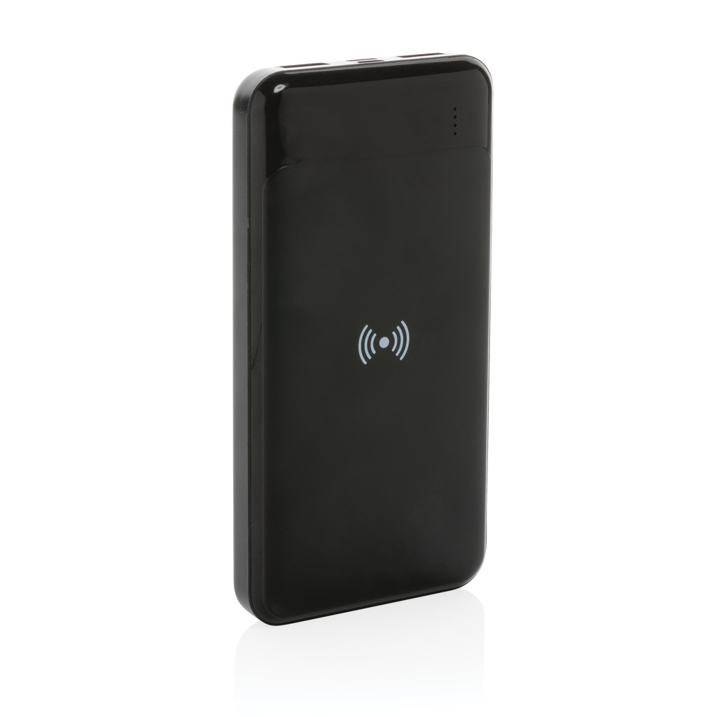 8.000 mAh powerbank with 5W wireless charger where the case is made out of RCS certified recycled ABS plastic. RCS (Recycled Claim Standard) is a standard to verify the recycled content of a product throughout the whole supply chain. Total recycled content: 22% based on total item weight. When fully charged the powerbank provides you with enough energy to re-charge your mobile phone up to four times. The powerbank contains a long lasting grade A 8.000 mAh lithium polymer battery. The power indicators will indicate the remaining energy level so you always know when to re-charge. Type-C input 5V/2A; Micro USB Input 5V/2A; Wireless Output 5W; 2x USB output 5V/2A; Item and accessories PVC free. Including PVC free recycled TPE material charging cable.