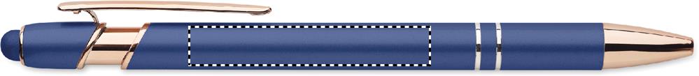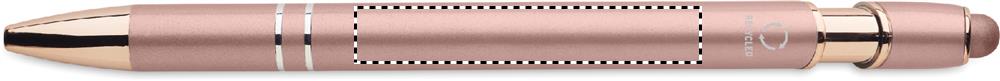 Recycled aluminium stylus push ball pen with rose gold details. Blue ink.