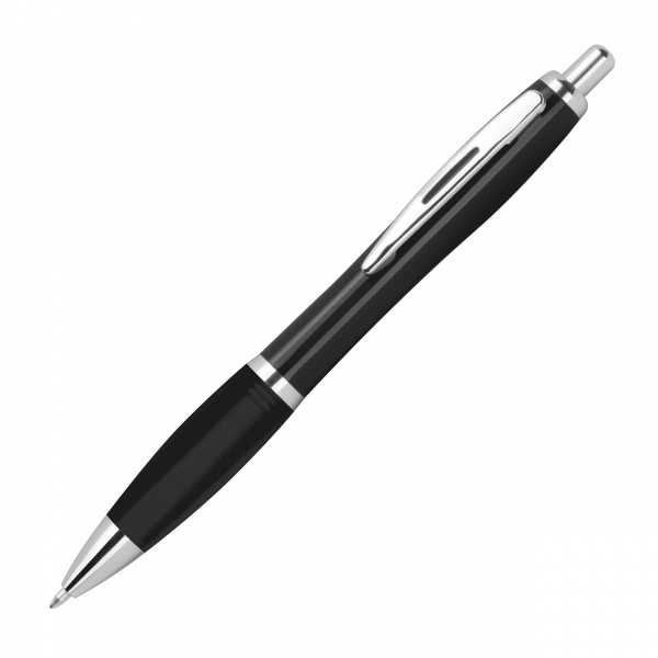 Ball pen made of recycled ABS with rubber grip zone and big refill. We print your logo on the right side of the clip.